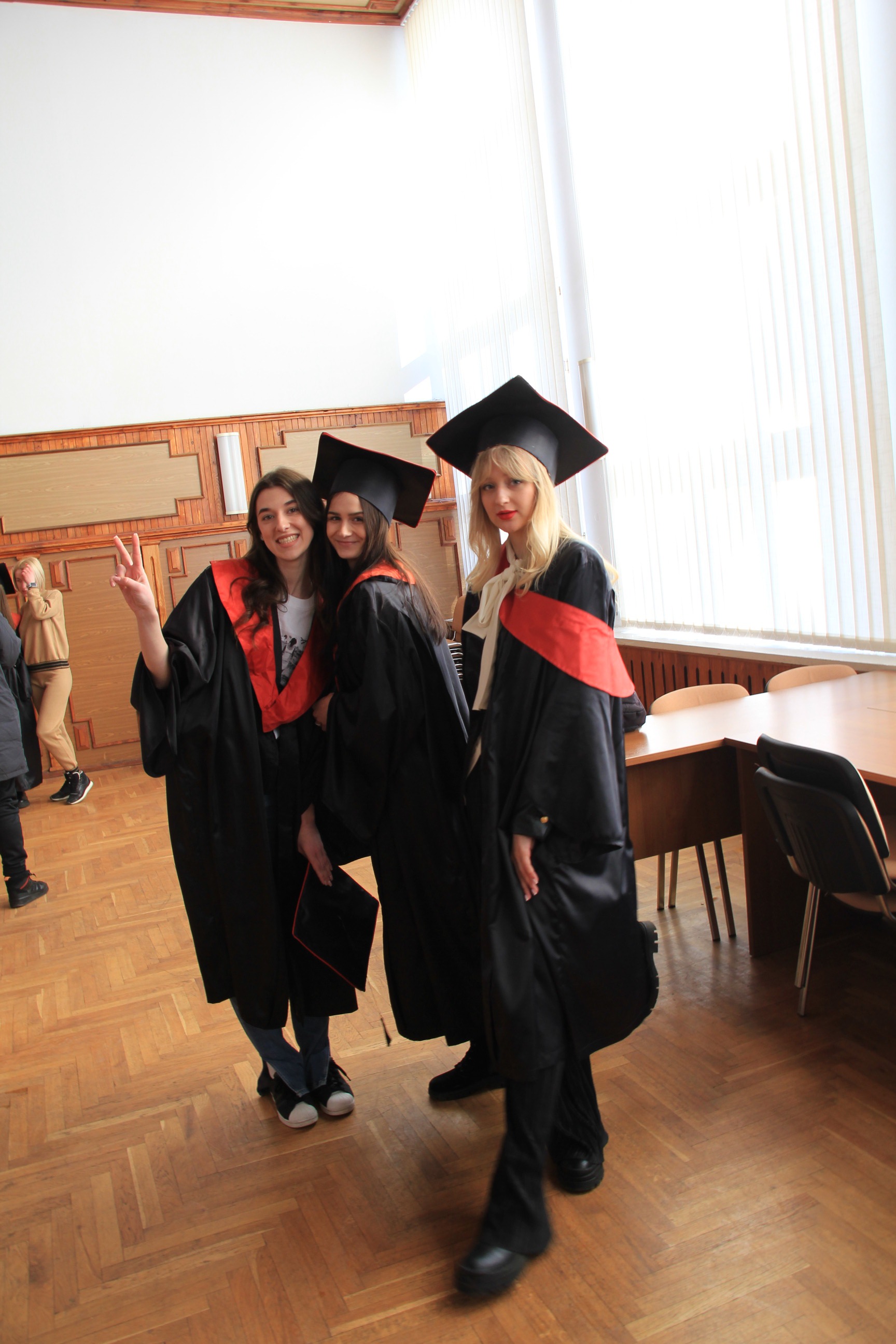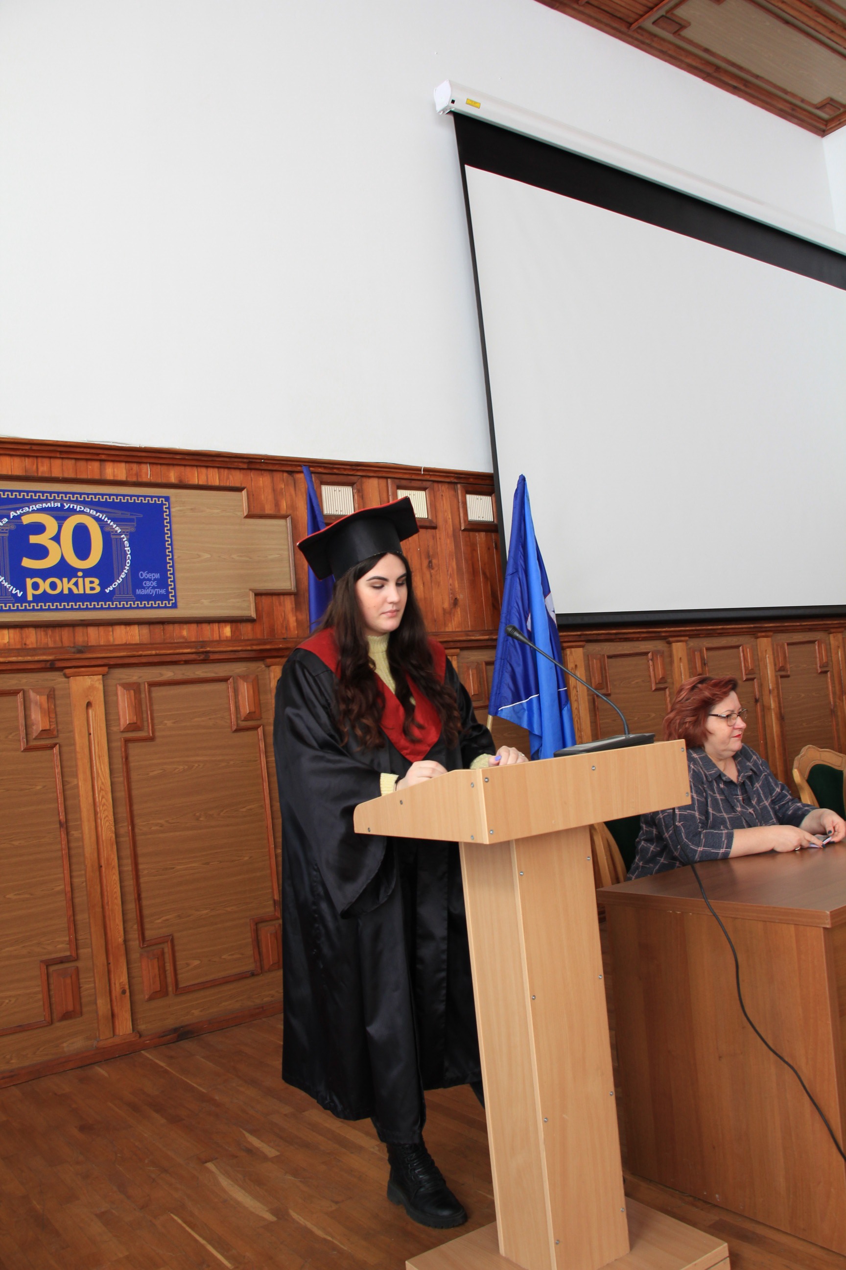 У цей святковий день їх тепло вітали ректор Академії Михайло Федорович Гончаренко, директор Технікуму Катерина Павлівна Швець, а викладач туристичних дисциплін Михайло Євгенович Полинцев презентував фільм- екскурс у студентські будні, кадри якого висвітлили подорожі групи мальовничими куточками України і Європи. Щире батьківське благословення прозвучало з уст всесвітлішого отця Діонісія (Мартишина), - завідувача кафедри українознавства, православ”я і теології МАУП, батька випускниці; духовний наставник подякував усім, хто навчав, побажав успіхів і злетів усім, хто навчався, і висловив впевненість у чудовому майбутньому новоспечених спеціалістів. У слові- відповіді учорашні студенти з теплом згадували роки, проведені у Технікумі, і відверто пишалися своїми першими дипломами, запевняючи, що попереду у них - університетська лава МАУП. Особливою гордістю кожного випускника є диплом з відзнакою, і цьогоріч вони дісталися Оксані Янченко та Ірині Бочковській: тож ще раз вітаємо випускниць з цим високим досягненням, а усім “ювілярам” щиро бажаємо гідно поповнити ряди молодої професійної та студентської еліти!