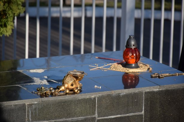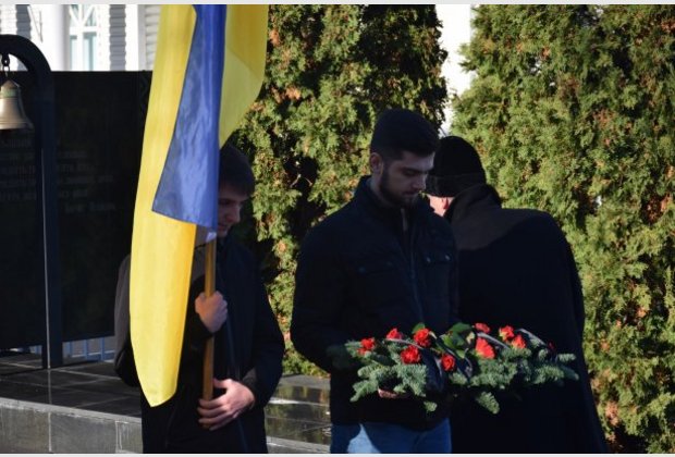 Після промови Микола Федорович оголосив хвилину мовчання. Голова Студентської ради МАУП Артур Мамонов від імені студентського колективу поклав квіти до монумента.