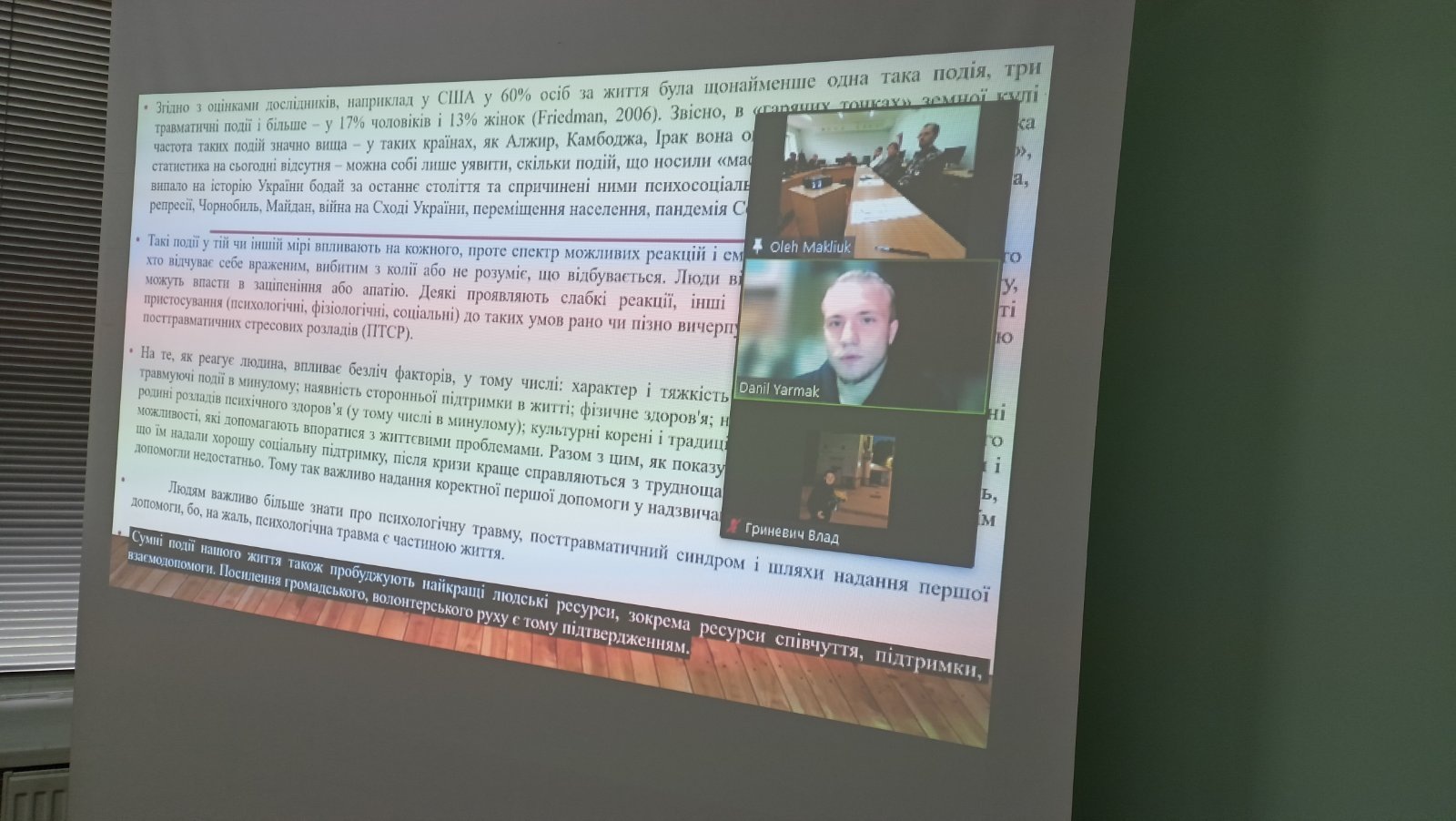 Захід проходив у змішаній формі, оскільки частина студентів знаходиться в різних регіонах України і приєдналась онлайн.