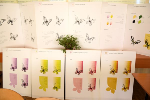 На виставці були представлені дипломні роботи, в котрих студенти могли побачити усі напрями, які вивчатимуть протягом року: це і фірмовий стиль, і типографіка, і верстка, і комп’ютерна графіка, і веб-дизайн, а також рекламні проекти.