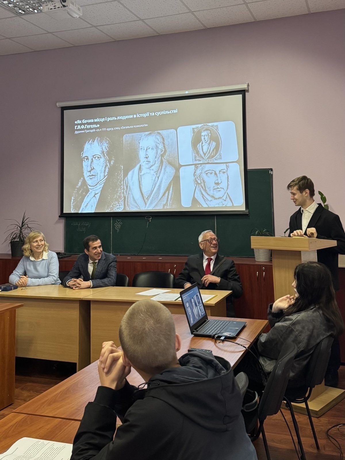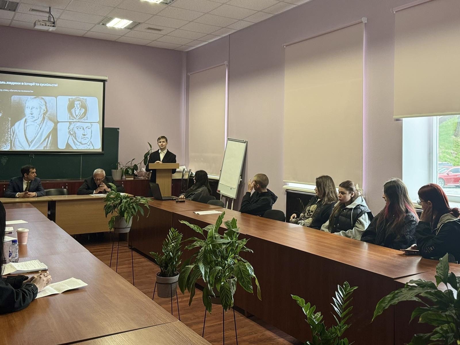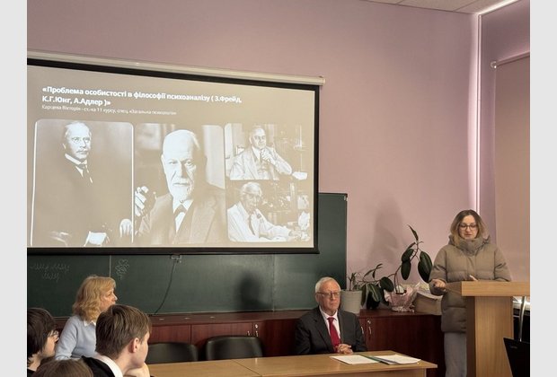 23 квітня в межах заходів до Дня психолога в Навчально-науковому інституті психології та соціальних наук відбувся круглий стіл на тему «Проблема людини в європейській культурі», який був організований кафедрою філософії і суспільних дисциплін. Модератором заходу виступив доктор філософських наук, професор Сергій Васильович Синяков за участі заступника директора, доктора філософії Святослава Сергійовича Корсакевича та завідувача кафедри, кандидата філософський наук Тамари Володимирівни Нич.