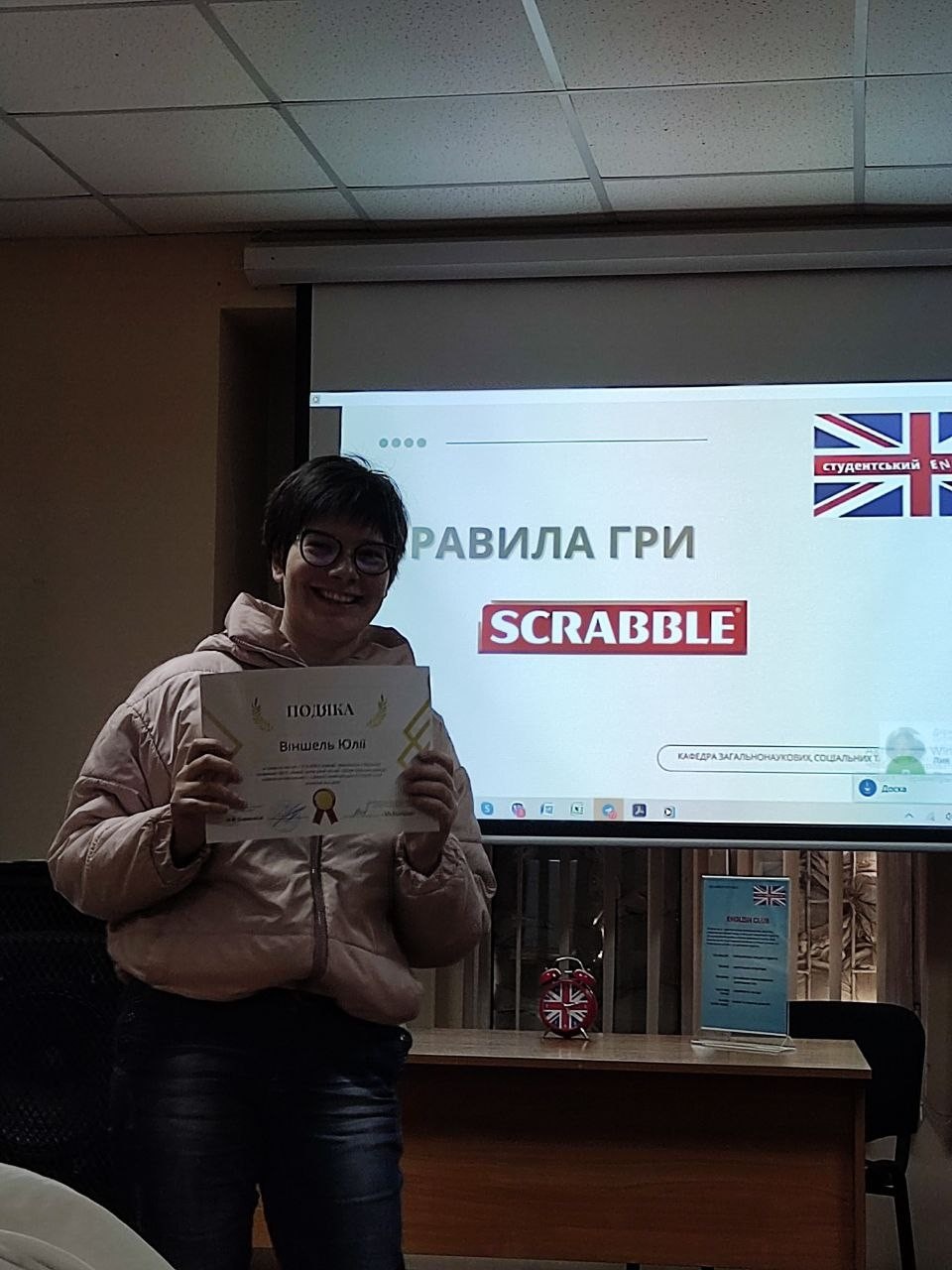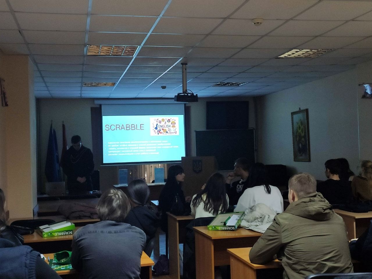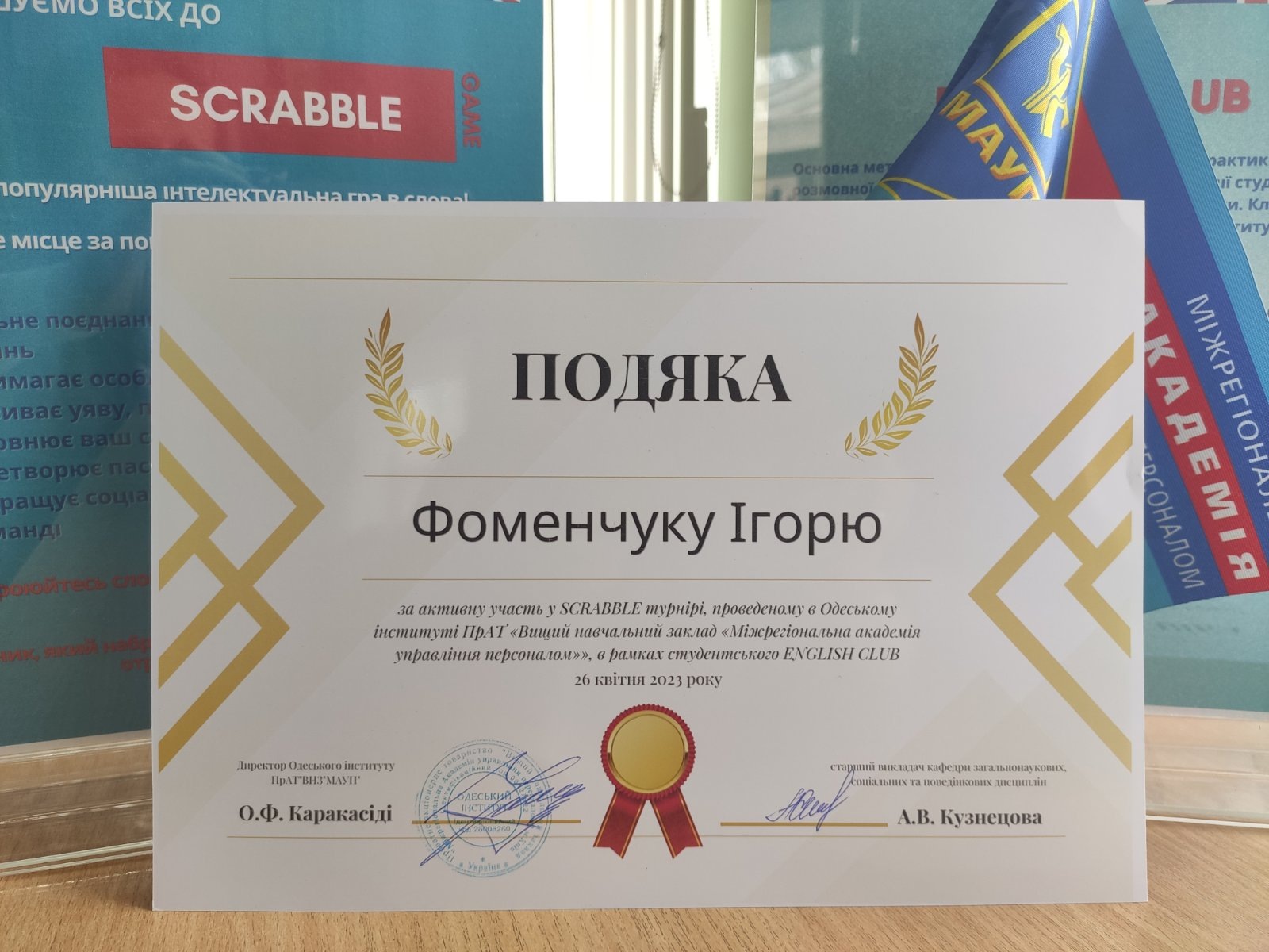 26 квітня 2023 року в Одеському інституті МАУП в рамках студентського ENGLISH CLUB під керівництвом старшого викладача кафедри загальнонаукових, соціальних та поведінкових дисциплін Анастасії Кузнецової пройшов турнір найпопулярнішої інтелектуальної гри в слова – SCRABBLE.