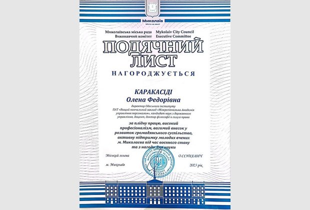 На початку заходу учасники пом'янули хвилиною мовчання загиблих в Україні. Представники співорганізаторів, Львівського інституту МАУП а також позаштатний радник Миколаївського міського голови Артем Кривцов привітали Інститут з ювілеєм. Від Миколаївського міського голови директор Інституту Олена Каракасіді та доцент кафедри правових дисциплін Олена Золотарьова отримали Подячні листи за плідну працю і активну підтримку молодих вчених м.Миколаєва.