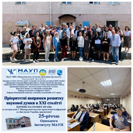 19.05.2023р. в Одеському інституті МАУП відбулася V Міжнародна науково-практична конференція до Дня науки України "Перспективні напрями розвитку наукової думки в ХХІ столітті", присвячена 25-річчю Одеського інституту МАУП