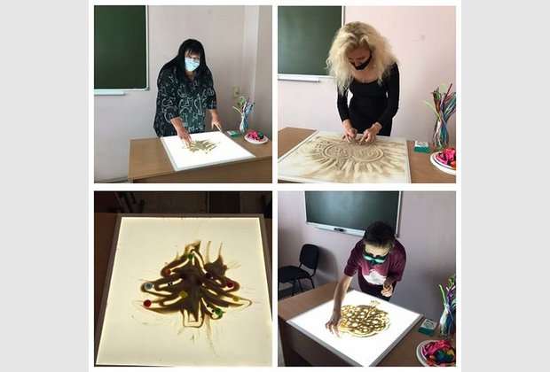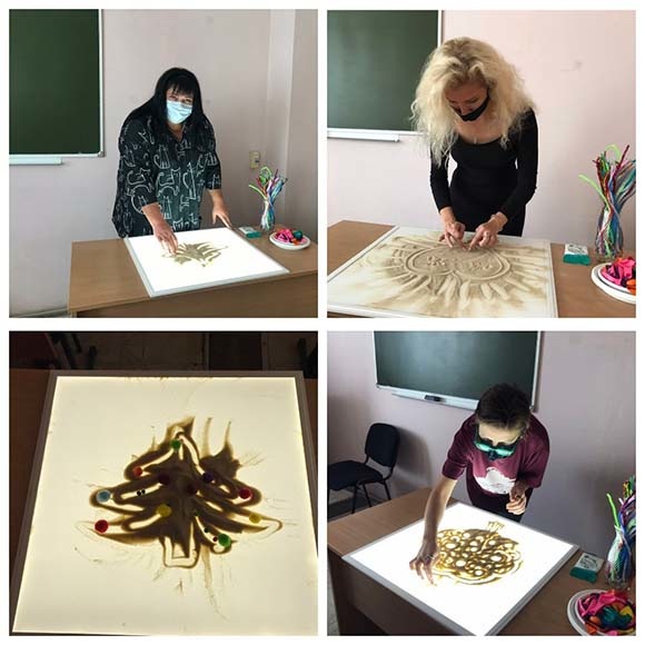 Під час сенсорної інтеграційної терапії нервова система людини отримує інформацію від рецепторів всіх відчуттів, що у свою чергу сприятливо впливає на психічний стан людини. На майстер-класах студенти ознайомились з такими матеріалами, як: синельна проволока, орбізи, малювання на світовому планшеті.