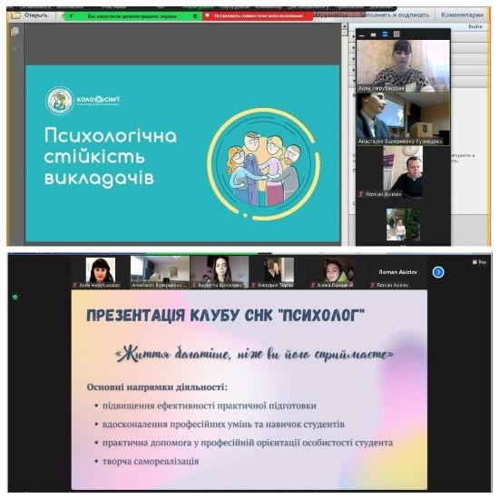 Засідання продовжили ґрунтовною дискусією. Присутні відмітили важливість психологічної допомоги учасникам академічної спільноти та іншим людям, що зазнають стресу під час війни, і домовились продовжити дослідження нових психологічних практик для активного застосування.