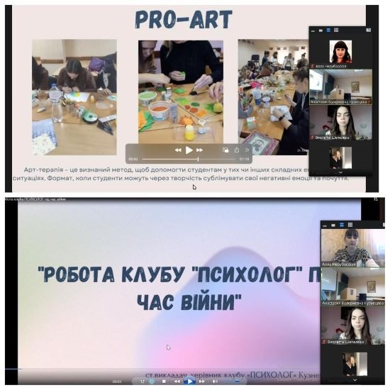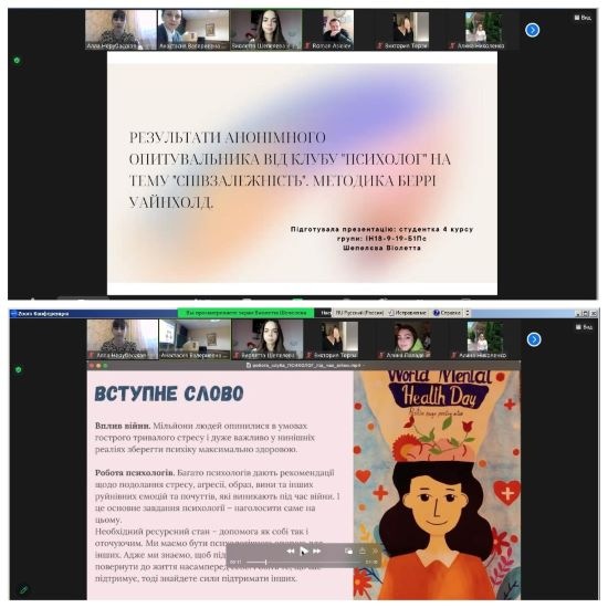 Захід відкрила д.філос.н., доцент, зав.кафедри загальнонаукових, соціальних та поведінкових робіт Алла Нерубасська, яка виступила з цікавою доповіддю про резильєнтність учасників освітнього процесу під час війни. Студентка 2 курсу спец.Психологія, учасниця Всеукраїнського конкурсу студентів-психологів Вікторія Терзі розповіла про майндфулнес та нейронауку медитації як новий спосіб подолання стресу та роботи із внутрішнім станом. Доповідь на тему: "Кохання до себе - кохання до Всесвіту" зробила заступник Голови Студентського наукового Клубу ПСИХОЛОГ, Голова Студентської ради Одеського інституту МАУП Єлизавета Шелепун. Голова Клубу ПСИХОЛОГ Віолетта Шепелєва разом з науковим керівником Клубу, старшим викладачем Анастасією Кузнецовою розповіли про активну роботу Клубу під час воєнного стану.