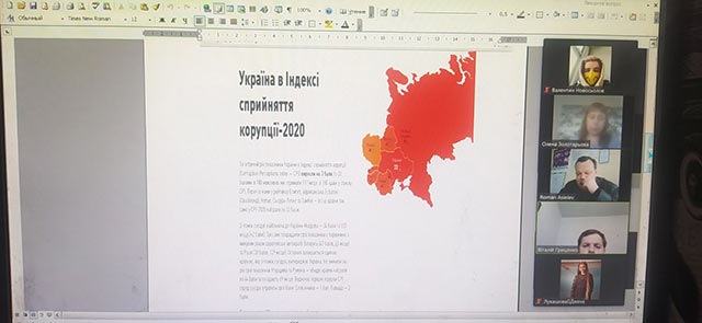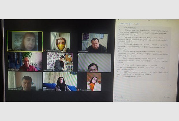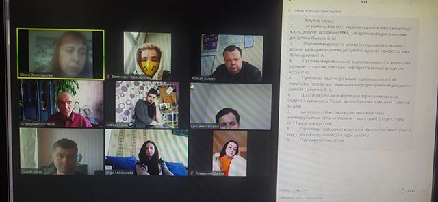 У дискусії в форматі Zoom взяли участь викладачі та студенти другого (магістерського) рівня вищої освіти, які обговорили причини корупції та шляхи її мінімізації, антикорупційне законодавство та систему антикорупційних органів, проаналізували динаміку Індексу сприйняття корупції, проблеми кримінальної відповідальності за корупційні правопорушення та адміністративної відповідальності за проступки, пов'язані з корупцією, проблеми подолання корупції в Нацполіції.