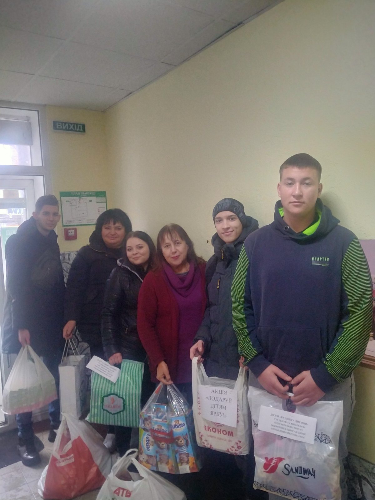 Впродовж Акції наші студенти зібрали речі, книжки, іграшки, канцелярські товари для дітей, закупили ліки, соки, яблука, печиво "Барні" та відвезли діточкам Будинку дитини, де сьогодні перебувають 60 дітей віком від народження до 5 років, 25 діточок вдалося вивезти в евакуацію.