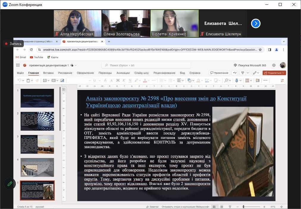 -цікаве дослідження щодо проблем децентралізації влади в Україні, з компаративістським аналізом реформи децентралізації в Польщі та Україні, провела студентка 2 курсу спеціальності Право, член Клубу "ФЕМІДА" Віолетта Кривенко (наук.керівник - ад'юнкт-проф. МКА Золотарьова О.А.).