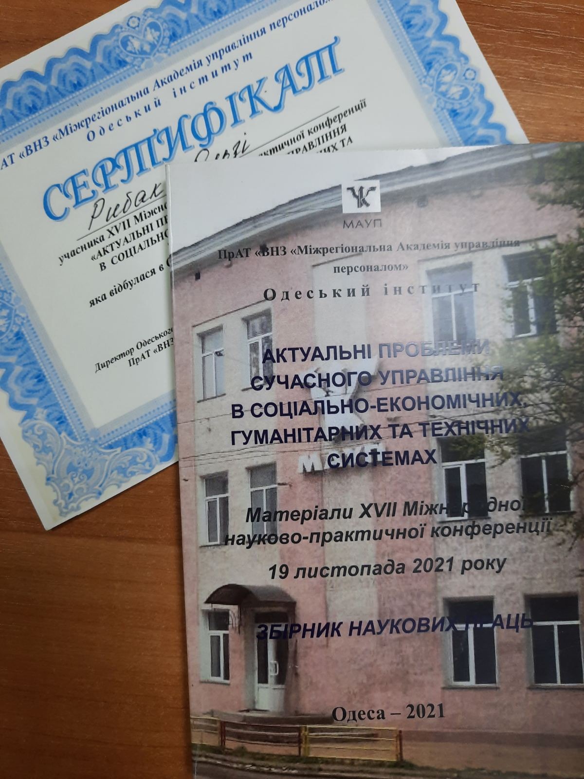 За матеріалами щорічної XVII Міжнародної науково-практичної конференції "Актуальні проблеми сучасного управління в соціально-економічних, гуманітарних та технічних системах" видано Збірник наукових праць, а всі участники отримали Сертифікати.