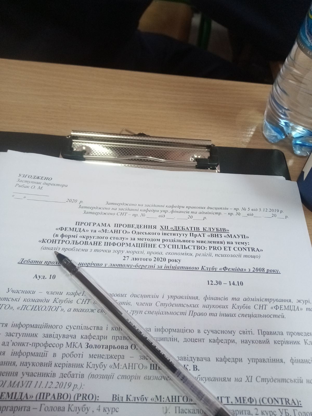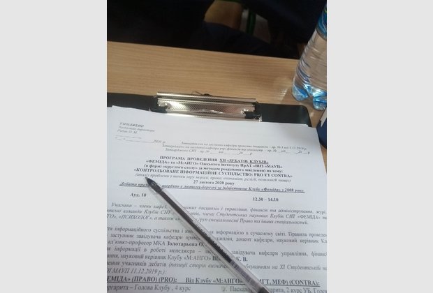 В Одеському інституті ПрАТ «ВНЗ«МАУП» 27 лютого 2020р. відбулися щорічні 12-ті Дебати Клубів ФЕМІДА та М:АНГО на тему: "Контрольоване інформаційне суспільство: pro et contra".