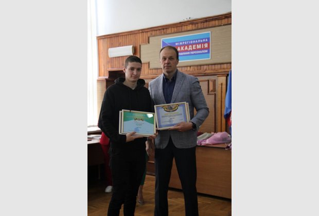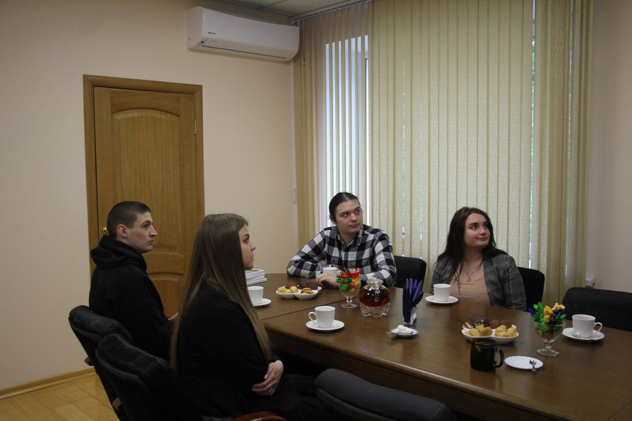 Після завершення Вченої ради студентів, які вибороли призові місця у Всеукраїнському конкурсі студентських наукових робіт, запросили на чаювання з Президентом Академії.