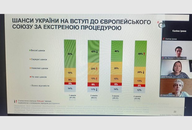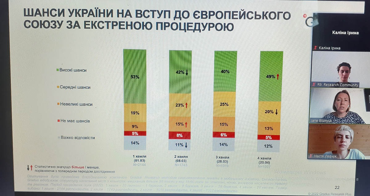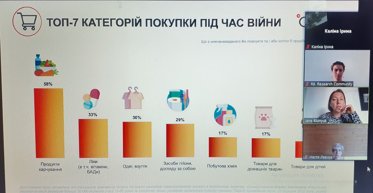 На мітапі ознайомилися із відсотковим співвідношення мови спілкування в побуті до та під час війни, топ-7 категорій покупки під час війни, тенденції та динаміку змін місць проживання громадян, проаналізували можливості України щодо вступу до ЄС за екстреною процедурою.
