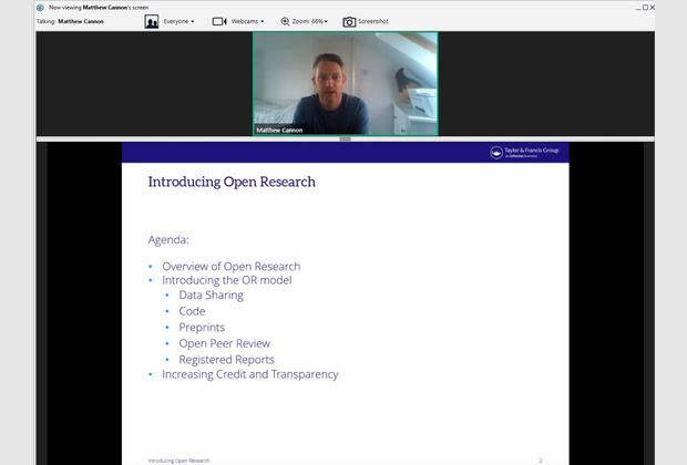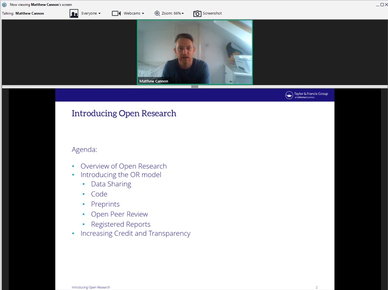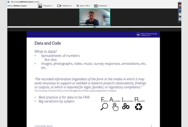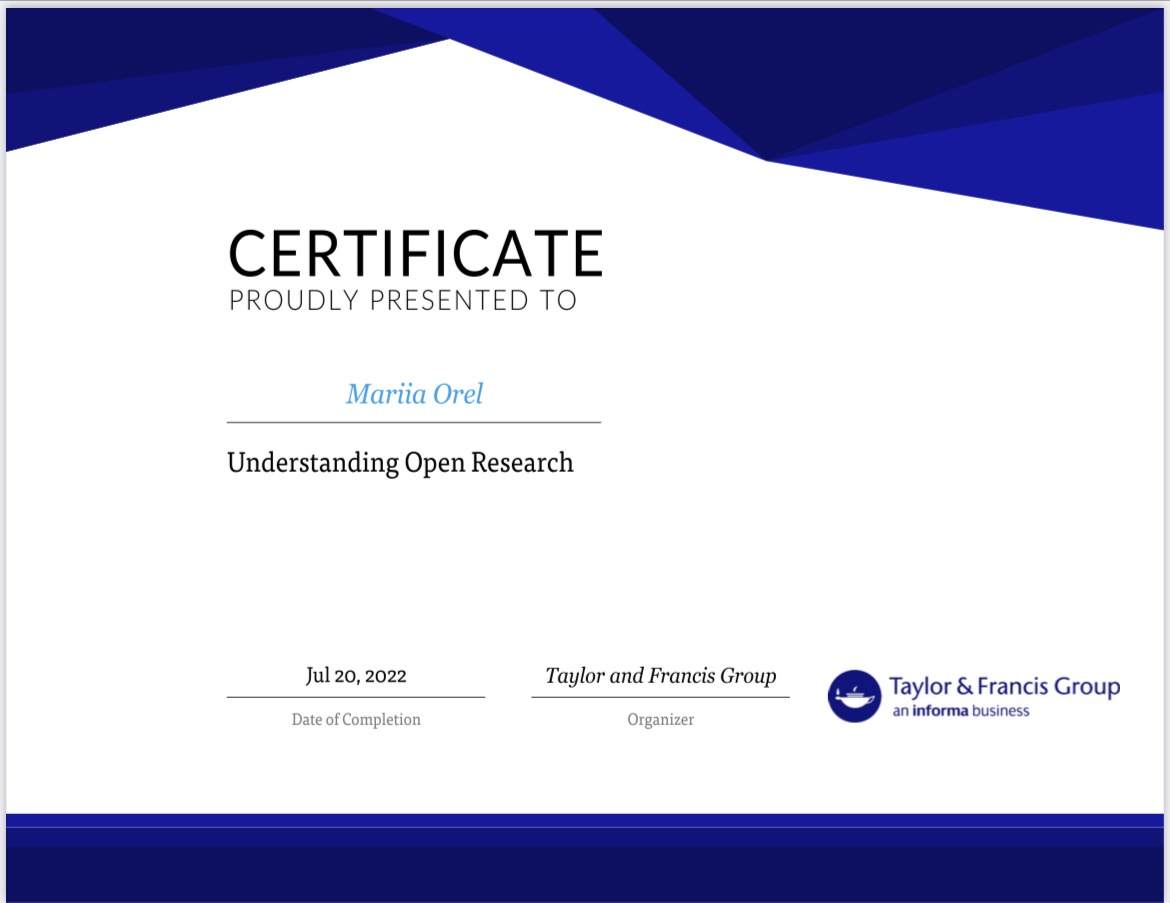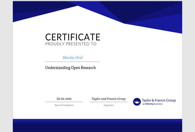 20 липня професор кафедри публічного адміністрування ННІУЕБ, доктор наук з державного управління Марія Григорівна Орел взяла участь у вебінарі «Understanding Open Research» від Taylor & Francis Group. На цьому вебінарі керівник відділу відкритих досліджень Метт Кеннон розповів про різні галузі, що охоплюються поточними визначеннями відкритих досліджень, окреслив деякі політики та практики які підтримуються у Taylor & Francis. М.Кеннон поінформував, як можна підвищити прозорість й відтворюваність своїх досліджень і, зрештою, посилити внесок у науку вченим.
