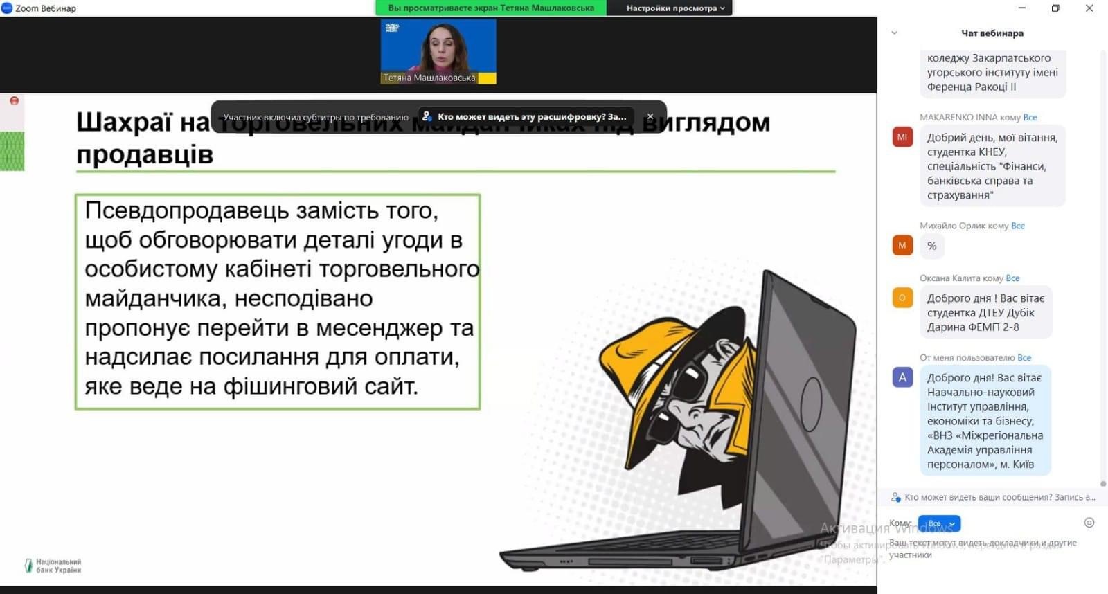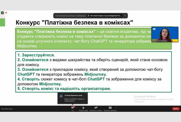 24.03.2023 року в межах заходів Global Money Week викладачі кафедри обліку і оподаткування ННІУЕБ МАУП взяли участь у вебінарі від головного експерта управління зав’язків з громадськістю та фінансової обізнаності НБУ Тетяни Машлаковської.