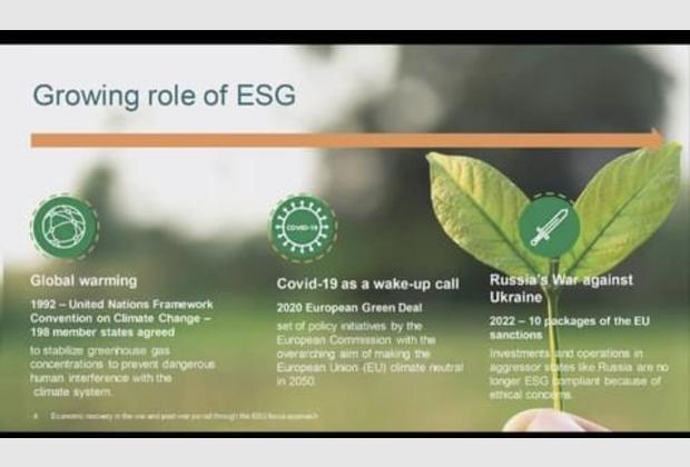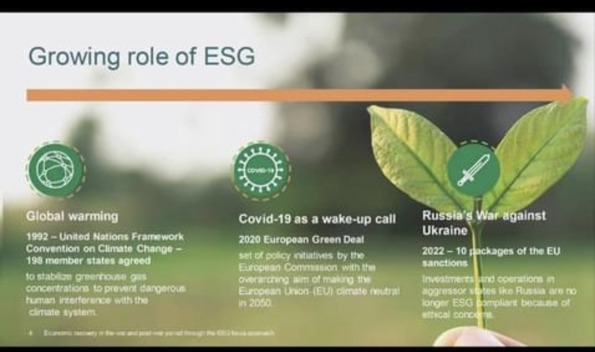 ESG підхід стає одним із ключових рушійних сил поточної економіки. Більшість компаній та інвестиційних фондів впроваджують програми або політику, які пов’язані з різними заходами ESG, оскільки вони прагнуть підвищити прибутковість і покращити доступ до капіталу. Водночас питання, пов’язані з ESG, в Україні мають бути перезавантажені через наслідки війни чи навіть через майбутню хвилю відновлення, особливо на інвестиційному ринку.