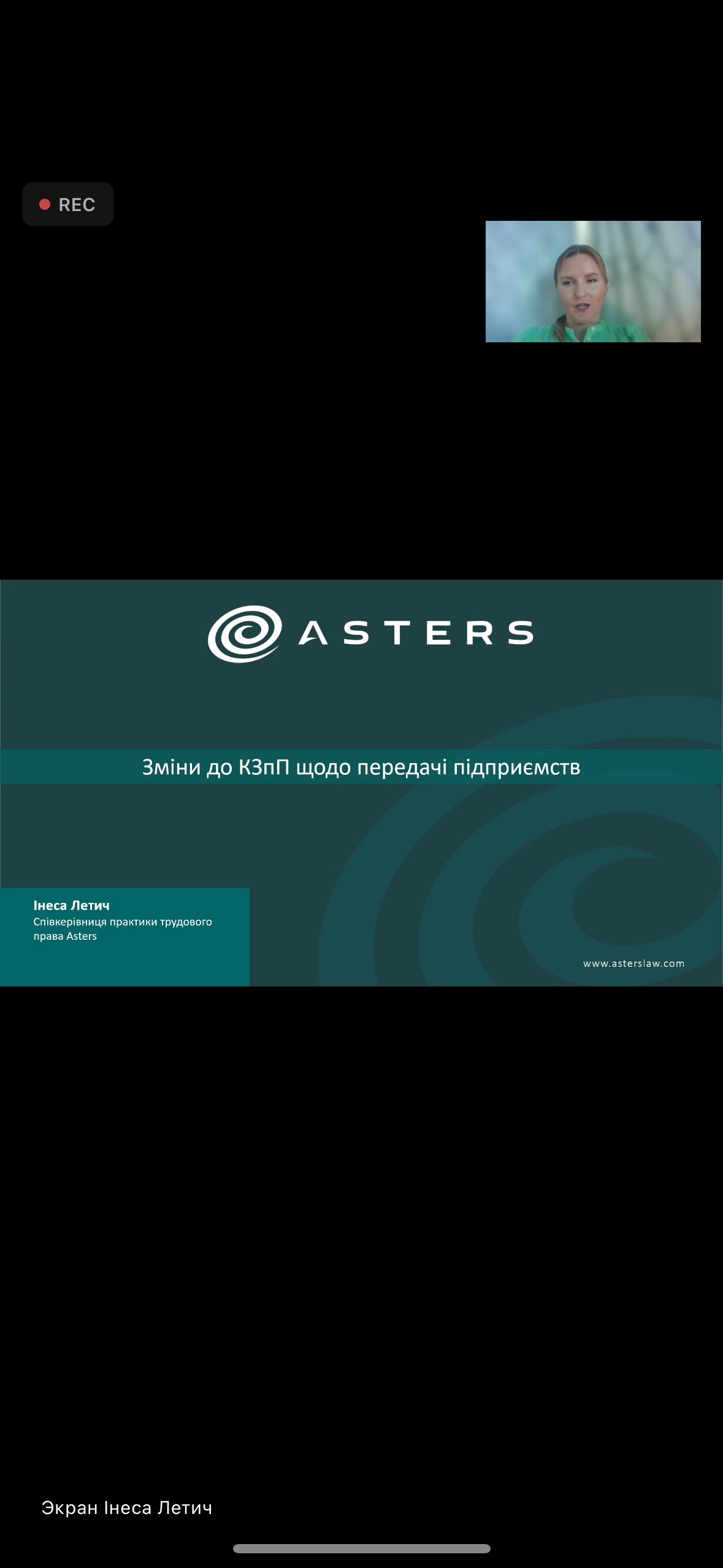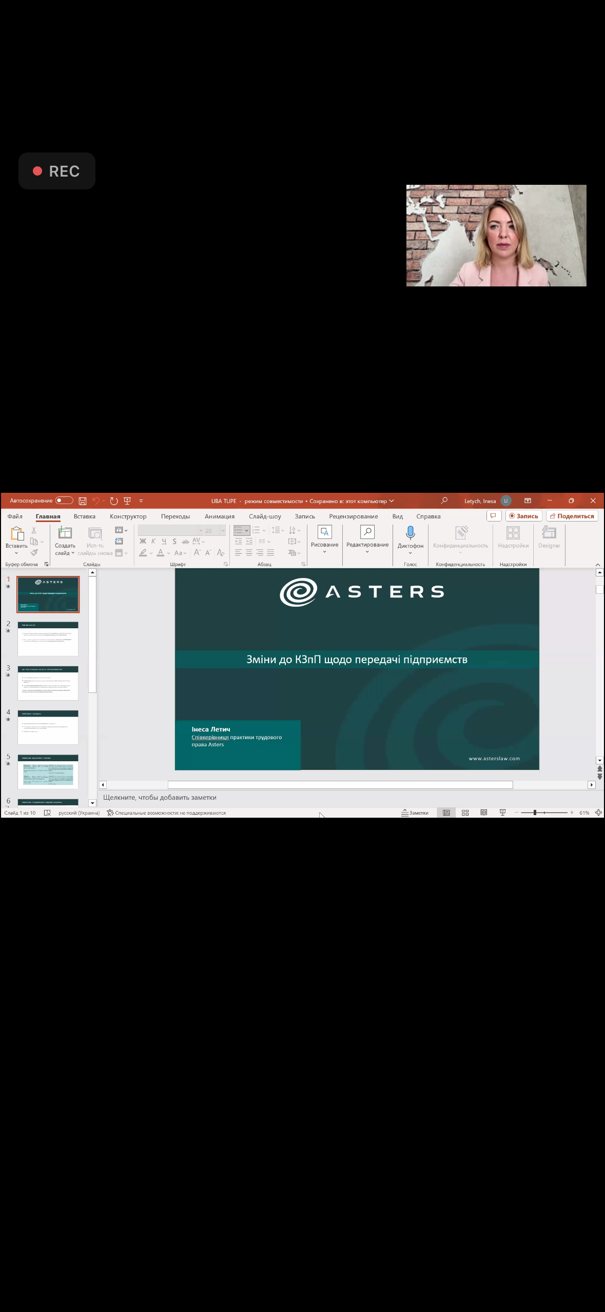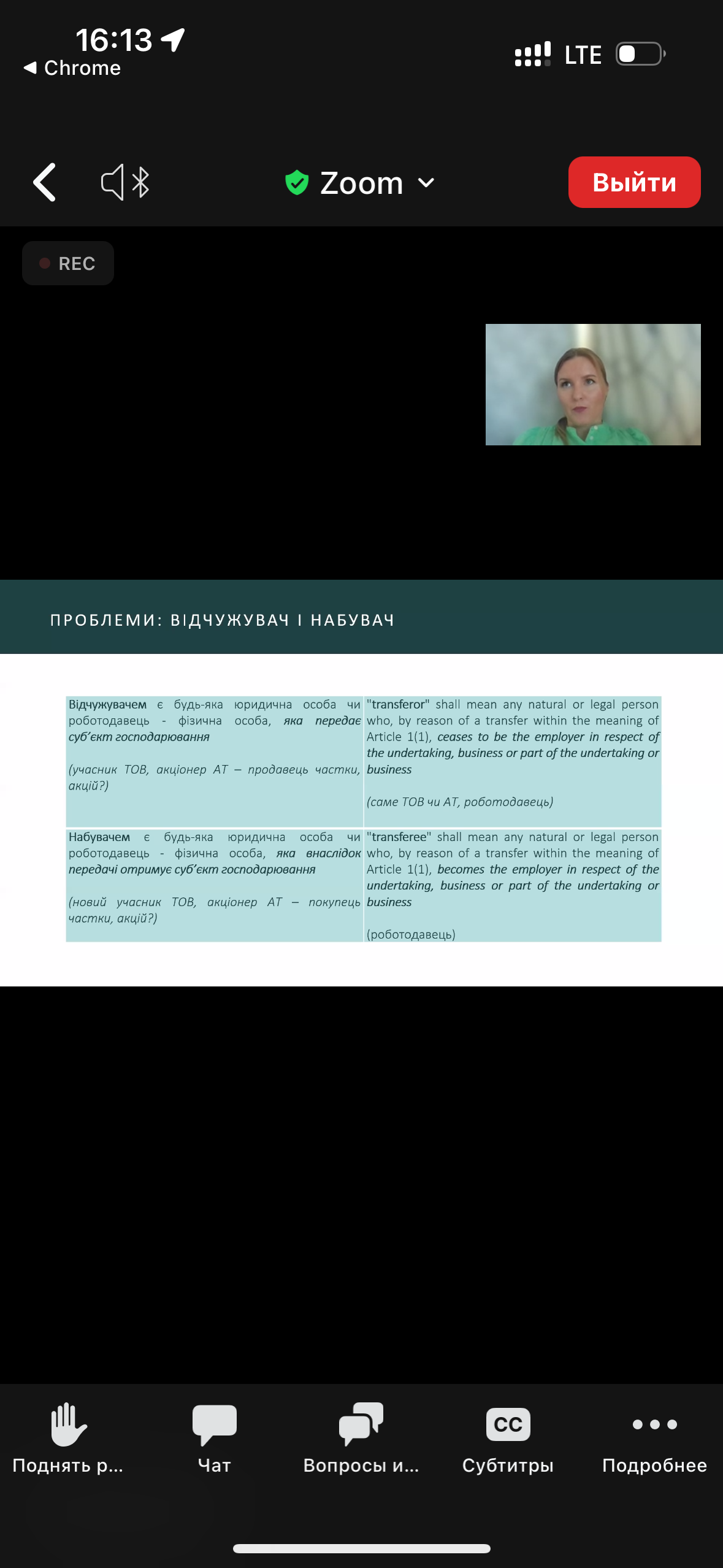 20 червня доцент кафедри цивільно-правових дисциплін та міжнародного права ННІП взяла участь у вебінарі організованим комітетом з трудового права Асоціації працівників України «Останні зміни до Кодексу законів про працю: передача субʼєкта господарювання та праця домашніх працівників».