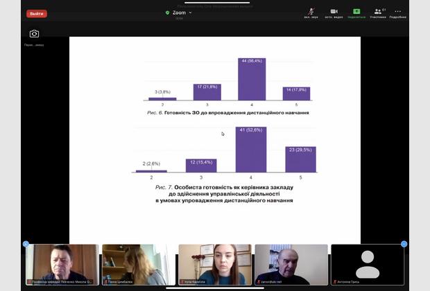 Директор Навчально-наукового інституту управління, економіки та бізнесу, доктор наук з державного управління, доцент, Семенець-Орлова Інна Андріївна, в своєму виступі результати актуальних досліджень щодо організації дистанційного навчання в умовах карантинних обмежень.