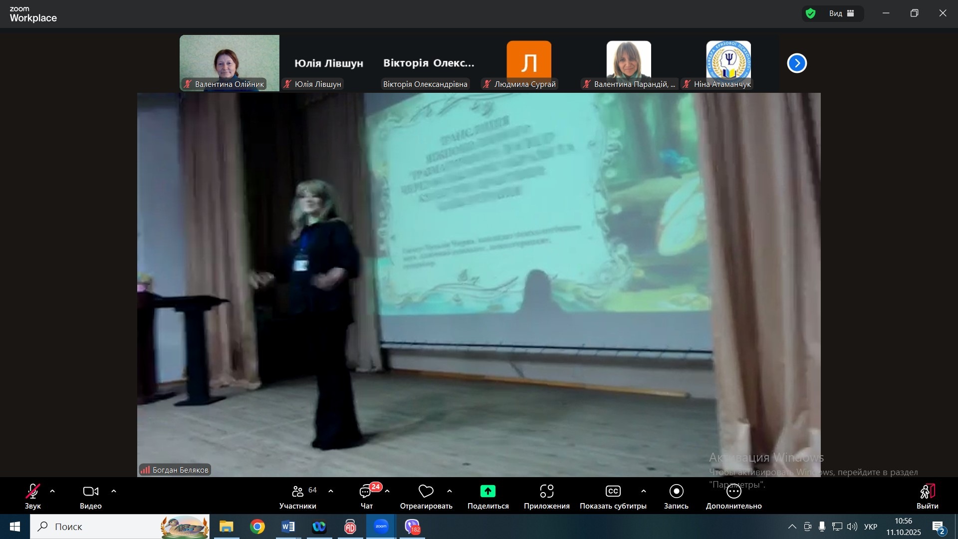 Доцеент кафедри психології Хмельницького інституту МАУП, кандидат психологічних наук Наталія Чорна в іншій секції виступила тренером і провела майстер-клас «Трансляція міжпоколінного травматичного досвіду через фольклорні образи та культурні практики: казкотерапія», де учасники досліджували феномен колективної пам’яті та можливості її трансформації через метафоричний і символічний зміст народних казок.