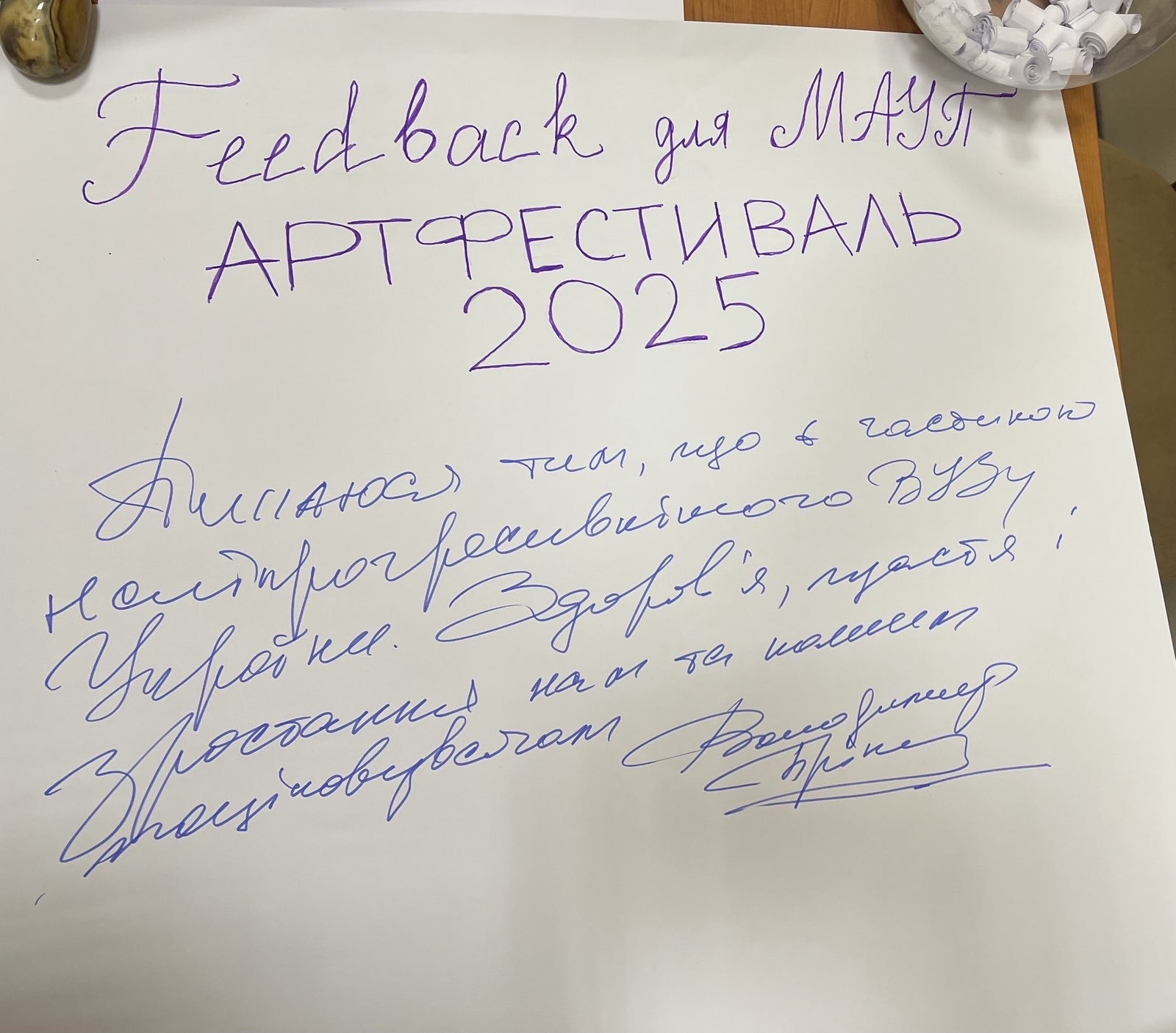 Для студентів-психологів участь у фестивалі стала вагомим досвідом професійного зростання, а також можливість побачити сучасні тенденції розвитку арттерапії та зрозуміти її роль у збереженні психічного здоров’я особистості в умовах соціальної нестабільності. Молодь мала змогу поглибити свої знання про терапевтичні ресурси мистецтва, дізнатися про інноваційні методи роботи з травматичним досвідом, відчути значення арттерапевтичного підходу як шляху до відновлення внутрішньої цілісності людини.