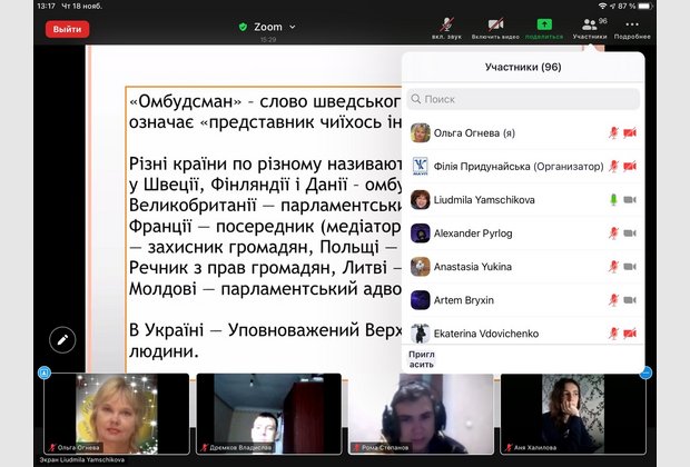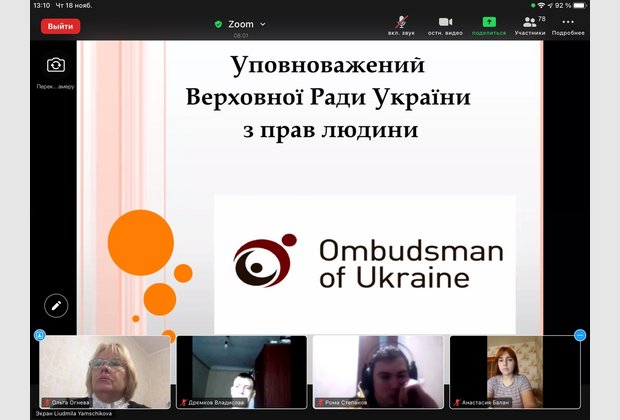 18 листопада відбулася зустріч з регіональним координатором взаємодії з громадкістю Уповноваженого Верховної Ради України з прав людини в Одеській області пані Людмилою Ямщиковою. Це перший захід, який проведений за підписаним Меморандумом про співпрацю між представником Уповноваженого Верховної Ради України з прав людини в південних областях та Придунайською філією Приватного товариства "Вищий навчальний заклад "Міжрегіональна академія управління персоналом".