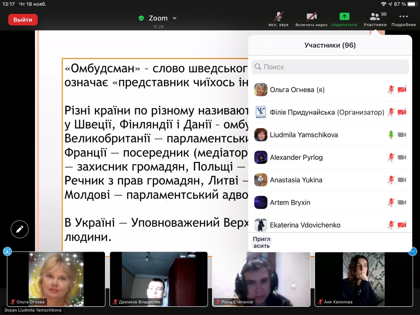 Вибудування інституцій омбудсмана в Одеській області - динамічний процес змін, про які дізналися студенти Придунайської філії Пр АТ "ВНЗ "МАУП"
