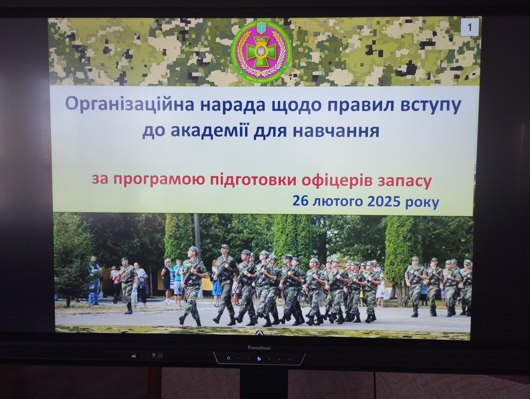 Метою зустрічі була важливість інформування здобувачів вищої освіти про можливість навчання у 2025/2026 н.р. за програмою підготовки офіцерів запасу.