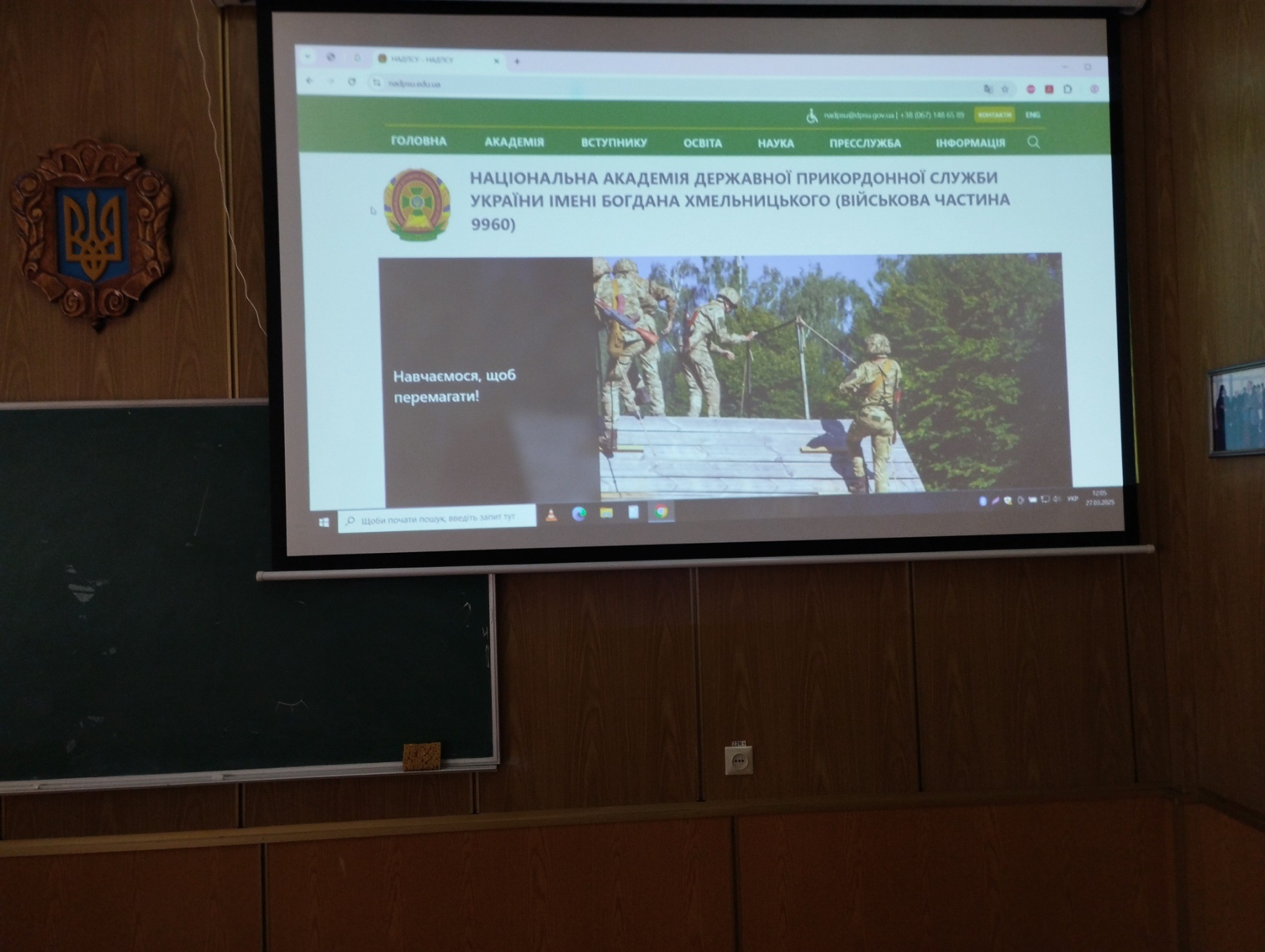 Виступ супроводжувався показом відеофільмів та презентацій. На кафедрі військової підготовки НАДПСУ вивчають військову справу, гартують себе фізично й морально переважно молоді люди, які дійсно бажають разом з дипломом про вищу освіту отримати звання офіцерів запасу, що є особливо важливим в умовах воєнного стану.