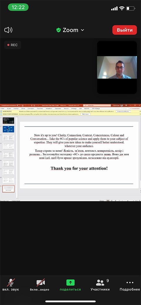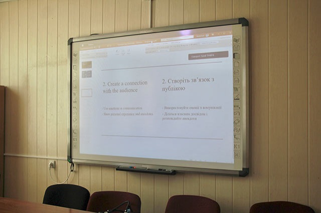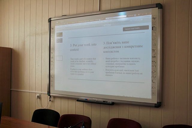 Саад Тайфа розповів про те, як грамотно презентувати та піднести хороший матеріал. Презентація була цікавою та продуктивною. Учасники дізналися багато корисної для себе інформації, яка стане в нагоді їм у подальшій науковій діяльності.