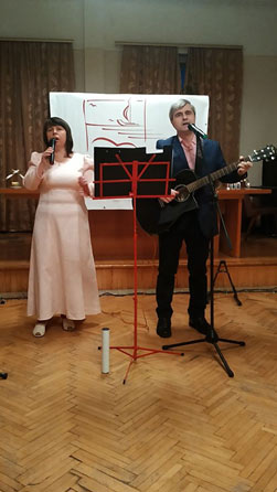 Формуванню позитивного настрою і акцентування важливості морально-етичних цінностей в нашому житті, підкресленню значимості завдань професійної діяльності лікарів-психологів щодо збереження репродуктивного здоров’я, охорони материнства й дитинства, сприяв пісенний виступ творчого дуету Олександра та Лілії Коняєвих.