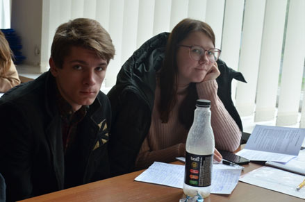 Молоді науковці – студенти І курсу спеціальності 225 «Медична психологія» ПрАТ «ВНЗ «МАУП» Влад Степаненко і Дарина Хохлова – під час конференції