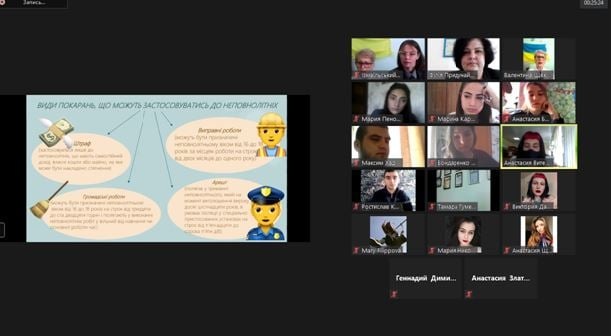 На конференції виступили студенти денного відділення І-ІІІ курсів Бондаренко Дар′я, Давидова Вікторія, Пєнова Марія, Богдан Анастасія, Баранюк Анастасія, Кравченко Ростислав, Карталяну Марина, Вітенко Анастасія, Ніколаєва Марія, Бондаренко Дар’я, які представили доповіді на актуальні правові теми і підготували презентації.