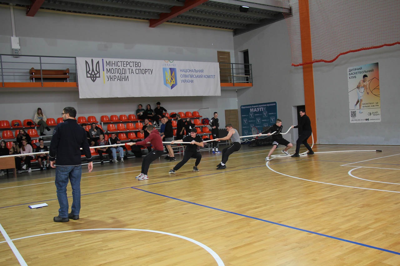 Спортивні змагання не тільки допомагає зміцнити фізичну форму студентів, але й створює атмосферу солідарності, командної роботи та розвитку міцного духу. Академічні змагання з перетягування каната стають вже традицією в МАУП і відбуваються регулярно.