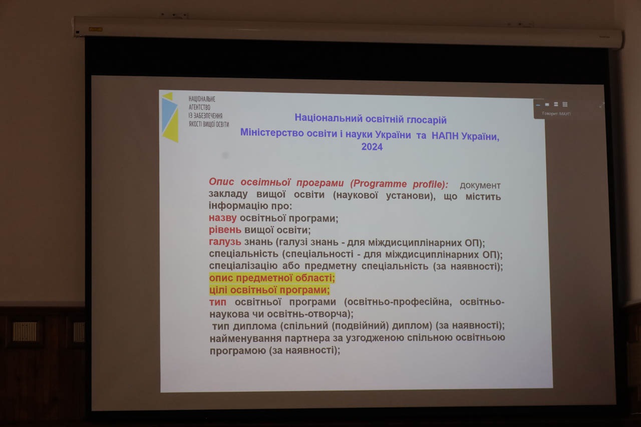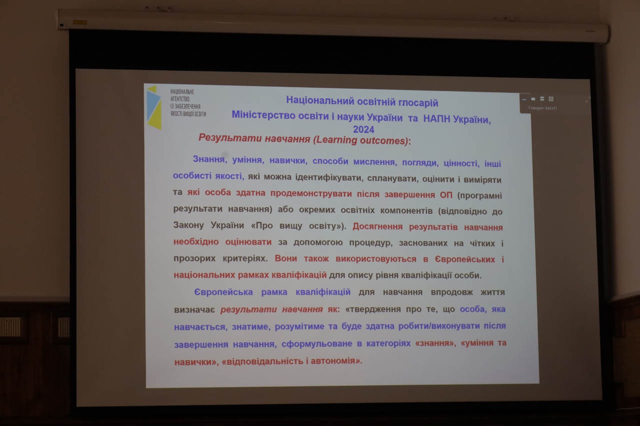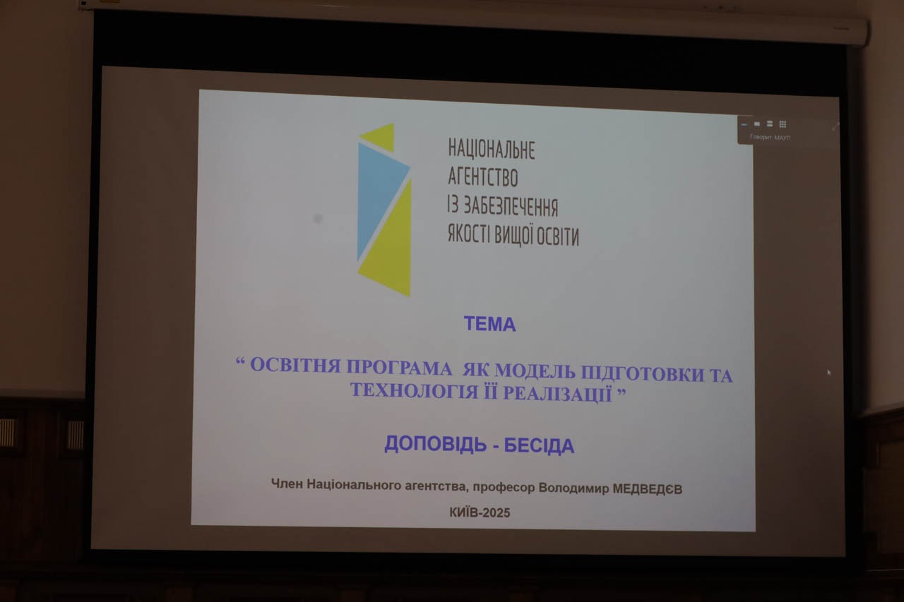Учасники обговорили важливі аспекти підвищення якості вищої освіти, академічної доброчесності та відповідності освітніх програм сучасним вимогам ринку праці, також здобувачі вищої освіти МАУП мали змогу почути корисні поради від експерта НАЗЯВО та більш глибше зрозуміти свою роль у формуванні освітніх програм та освітнього процесу в цілому.