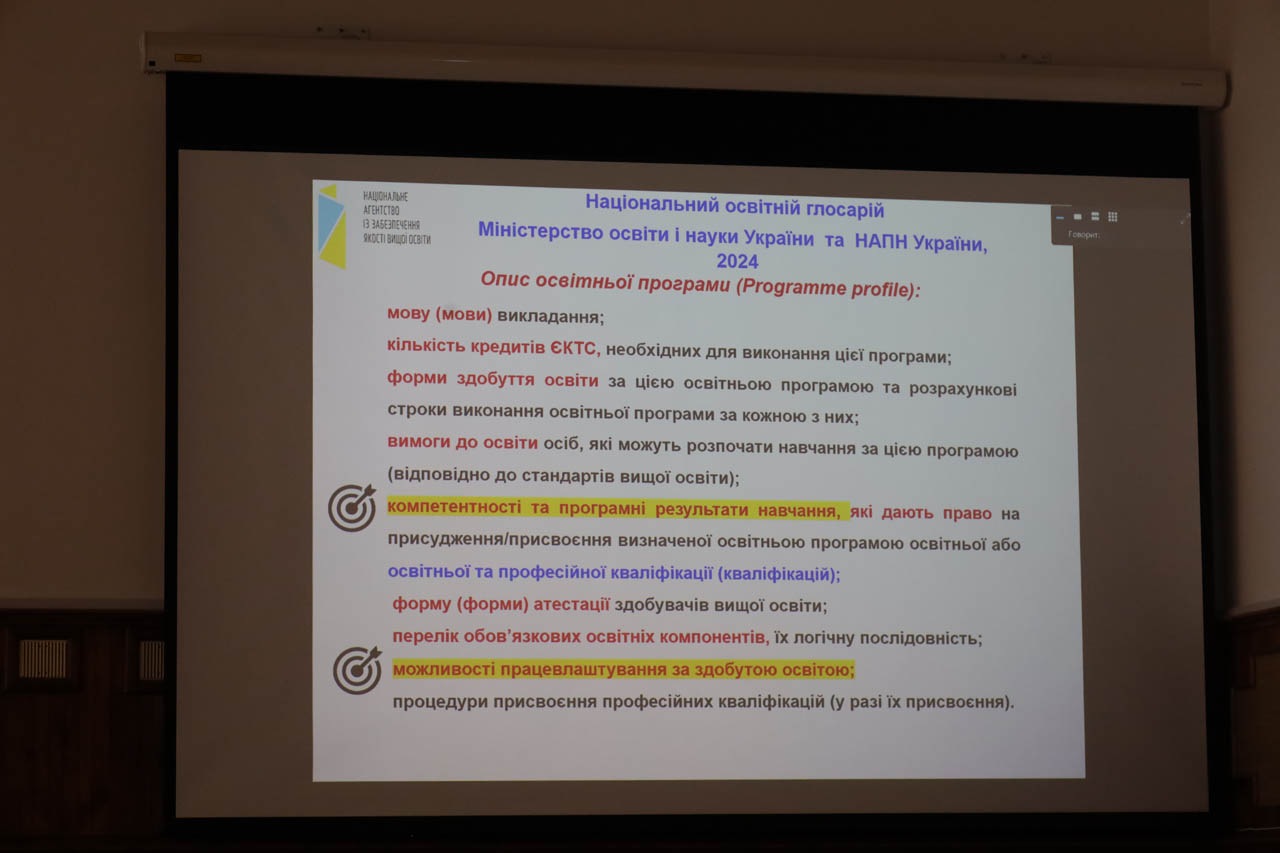 Засідання відзначилося активною дискусією щодо вдосконалення освітніх програм, їхньої відповідності до вимог сучасного ринку праці та підвищення якості підготовки студентів.