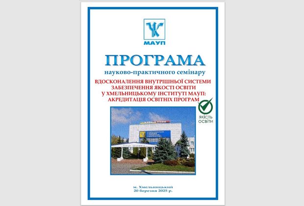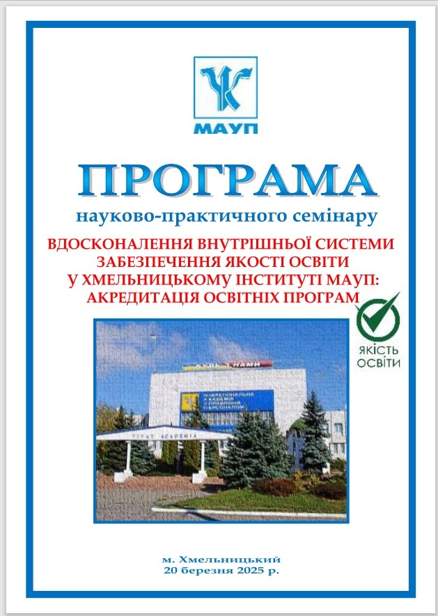 20 березня 2025 року в рамках засідання Науково-методичної ради Хмельницького інституту МАУП відбувся науково-практичний семінар «Вдосконалення внутрішньої системи забезпечення якості освіти у Хмельницькому інституті МАУП: акредитація освітніх програм».