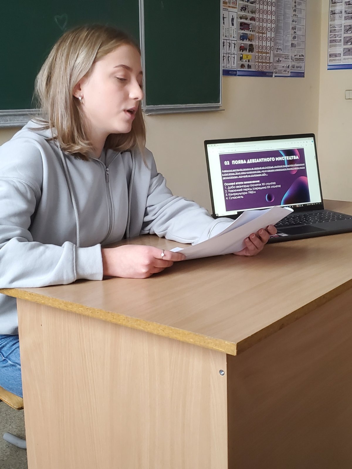 Так, увагу студентів привернули: віртуальне мистецтво, девіантне мистецтво, пост-інтернет мистецтво, гібридне мистецтво, стріт-арт мистецтво та мистецтво мемів, обговорення яких охопило не тільки естетичну привабливість, але й етичні засади існування та поширення даних напрямів в сучасному світі.