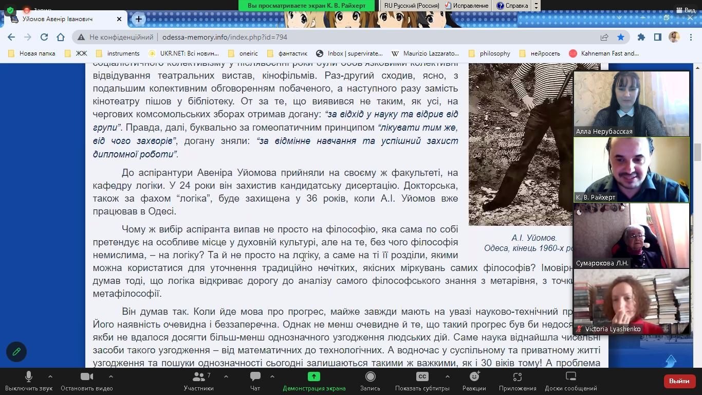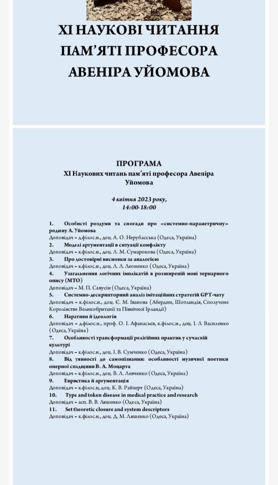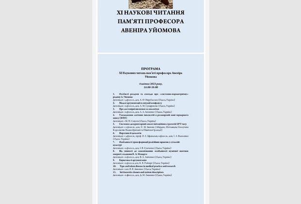 4 квітня 2023 року доктор філософських наук, доцент, завідувачка кафедри загальнонаукових, соціальних та поведінкових дисциплін Одеського інституту МАУП Алла Олександрівна Нерубасська відкрила ХІ Наукові читання пам'яті відомого філософа, професора Авеніра Уйомова доповіддю на тему: "Особисті роздуми та спогади про "системно-параметричну" родину А. Уйомова".