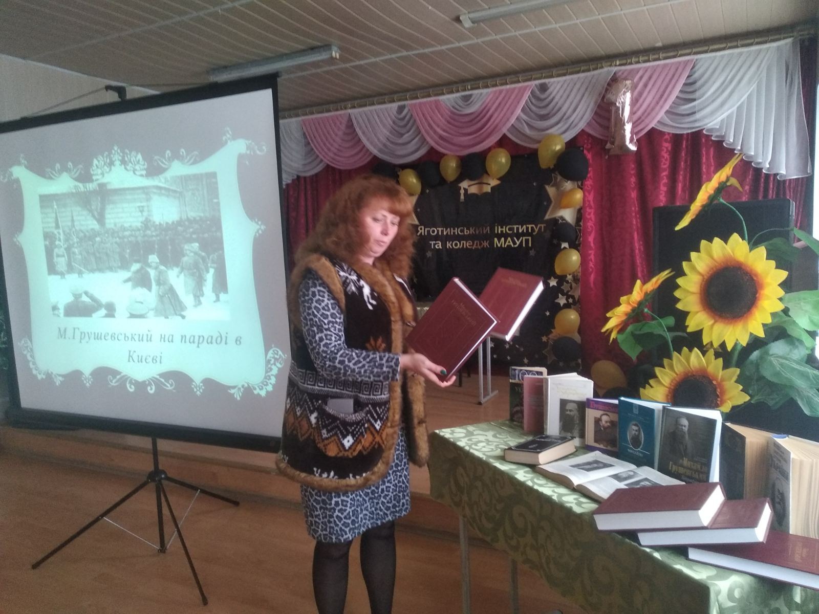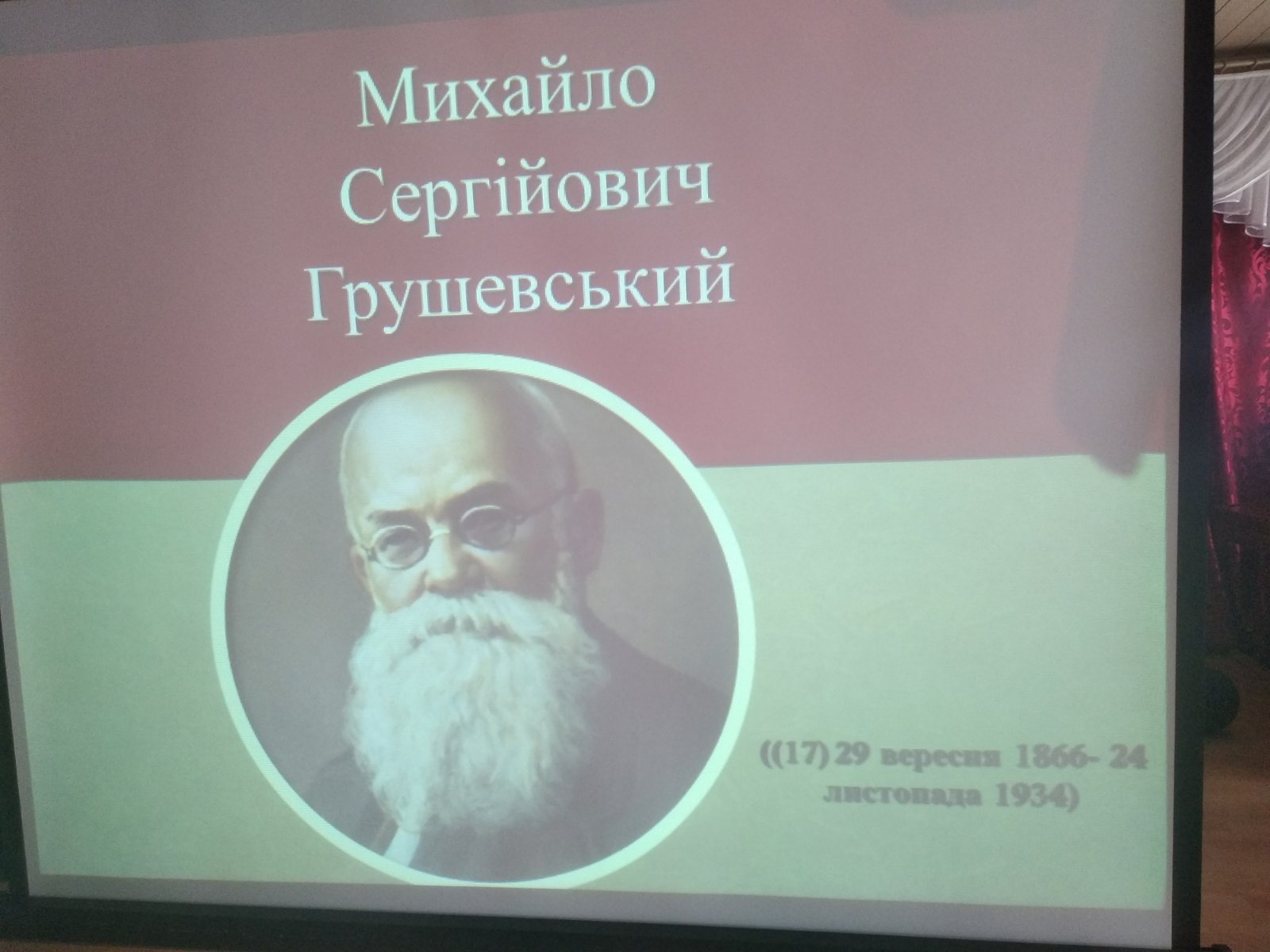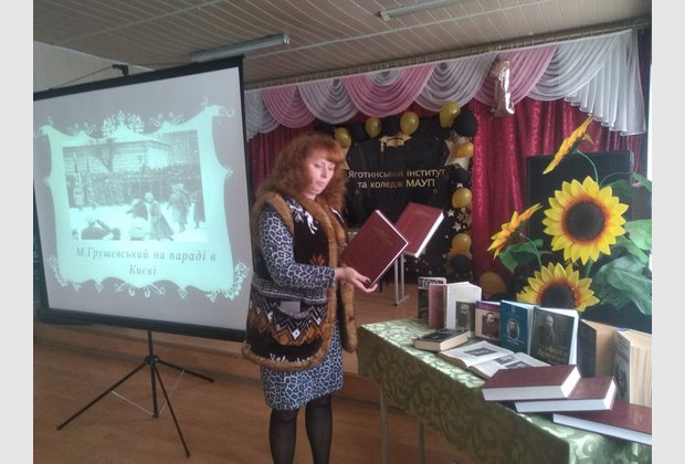 28 сентября на базе Профессионального колледжа при Яготинском институте ЧАО «ВУЗ «МАУП» для студентов первого и второго курса состоялась открытая лекция, посвященная 155-летию со дня рождения Михаила Грушевского. Студенты прослушали о детстве, учебе, научной работе и сложном жизненном пути выдающегося украинского историка. Благодаря преподавательской литературе, которую любезно представили нам из городской библиотеки, студенты ознакомились с работами Михаила Сергеевича. Более подробный анализ работ Михаила Грушевского сделал к. и. н. Михайленко Сергей Николаевич, который отметил, что именно Грушевский выделял украинцев как нацию со своей самобытной историей, которая не прерывалась, а существовала на протяжении многих веков.