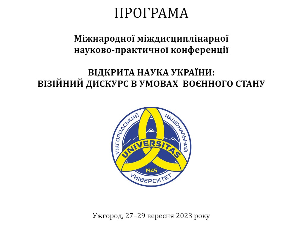 27–29 вересня 2023 року відбулася Міжнародна міждисциплінарна науково-практична конференція «ВІДКРИТА НАУКА УКРАЇНИ: ВІЗІЙНИЙ ДИСКУРС В УМОВАХ ВОЄННОГО СТАНУ» на базі Ужгородського національного університету. В даному заході приймали участь викладачі кафедри економіки, управління та туризму Хмельницького інституту МАУП.