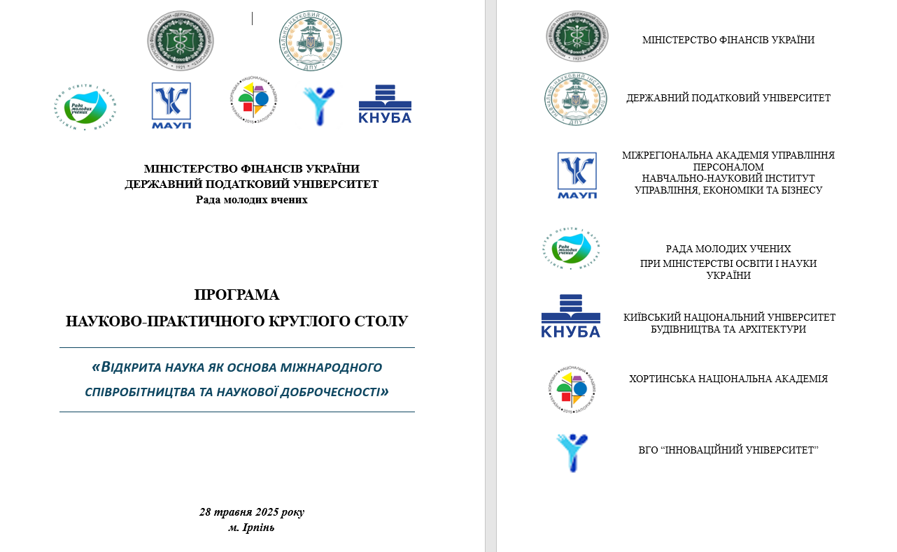 28 травня директор Навчально-наукового інституту управління, економіки та бізнесу МАУП д.держ.упр., проф. Семенець-Орлова І.А. виступила з вітальним словом на пленарному засіданні круглого столу «Відкрита наука як основа міжнародного співробітництва та наукової доброчесності». Захід організований Державним податковим університетом. Навчально-науковий інститут управління, економіки та бізнесу - серед співорганізаторів круглого столу.