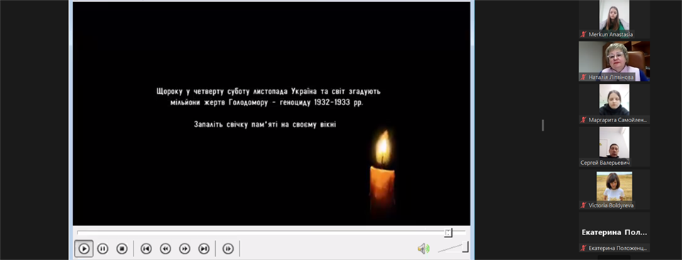 Модератор заходу, завідувач кафедри загальнонаукових, соціальних та поведінкових дисциплін, кандидат історичних наук Ямполець П.В. наголосив, що згідно указу президента України, щорічно, у четверту суботу листопада (в цьому році – 26.11.2022) відзначається День пам’яті жертв голодоморів. Цим фактом увічнюється світла пам’ять всіх українців, які постраждали і загинули від штучних голодоморів, влаштованих комуністичною владою в Україні у першій половині ХХ століття.