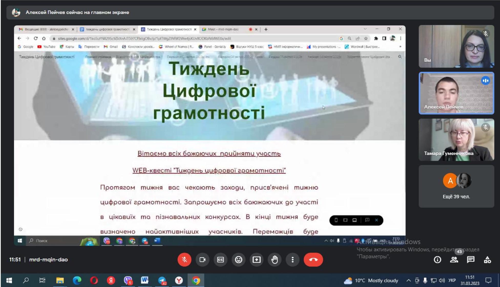 Відкриття Тижня комп’ютерної грамотності відбулось 31 березня в Придунайської філії ПрАТ «ВНЗ «Міжрегіональна академія управління персоналом». Модератором заходу виступив викладач кафедри суспільно-наукових дисциплін Пейчев О. Ю. З привітальним словом до здобувачів освіти звернулася директорка філії проф. Гуменникова Т.Р., яка зазначила, що комп’ютерна грамотність є важливою умовою професійної кваліфікації майбутнього фахівця.