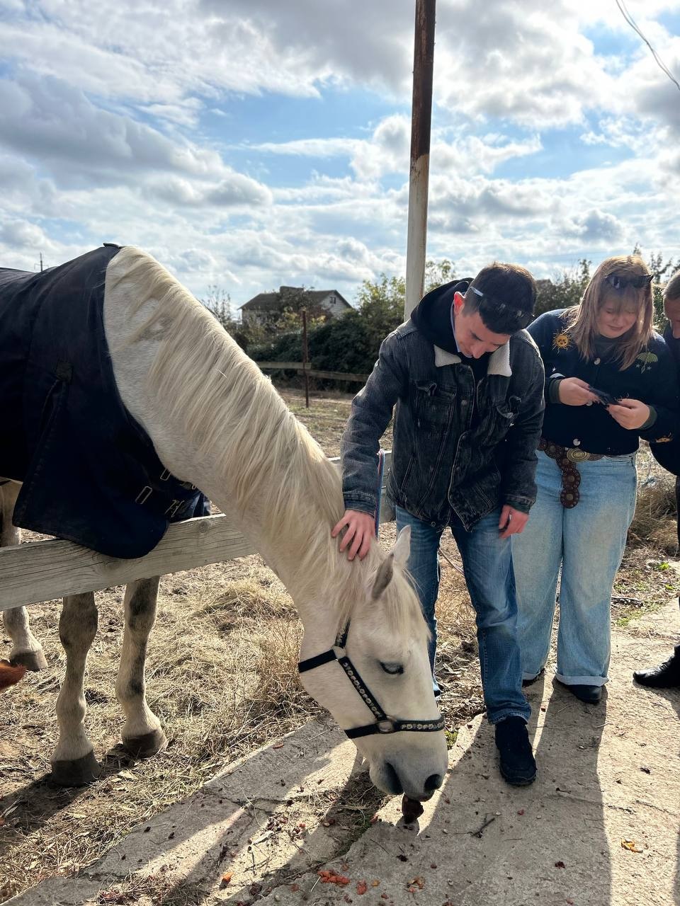 У межах волонтерської ініціативи студенти не лише долучилися до вправ з іпотерапії, а й підгодовували коней після завершення заняття, висловлюючи вдячність тваринам за спокій і підтримку.