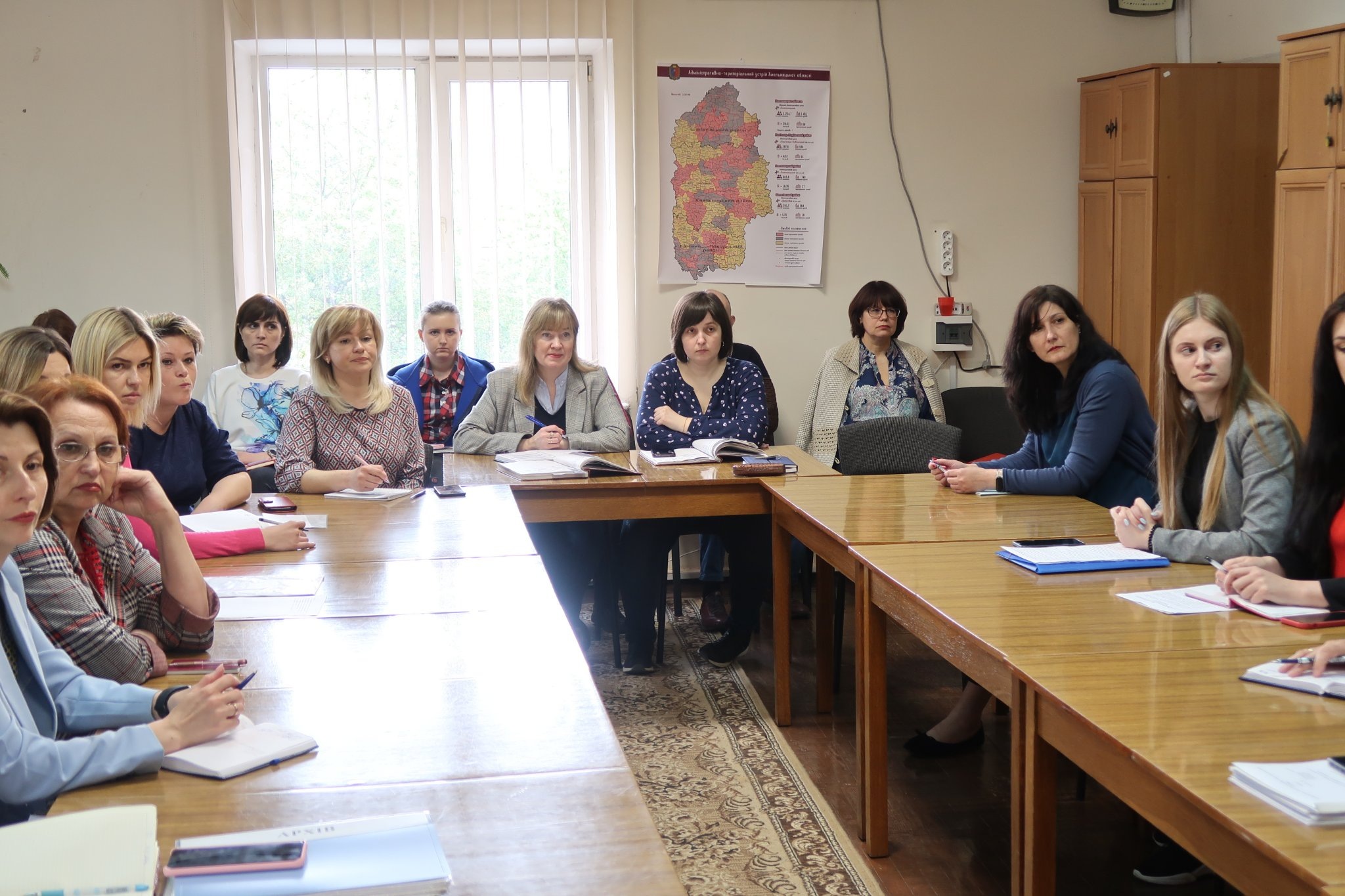 На початку засідання директор архіву Катерина Миколаївна Бурдуваліс, привітала всіх членів засідання та звернула увагу на продуктивність праці архівних підрозділів у воєнний час. Заслухали звіт голови ЕК та відповідального за архівний підрозділ Департаменту природних ресурсів та екології Хмельницької облдержадміністрації про стан впорядкування документів та організації діловодства.