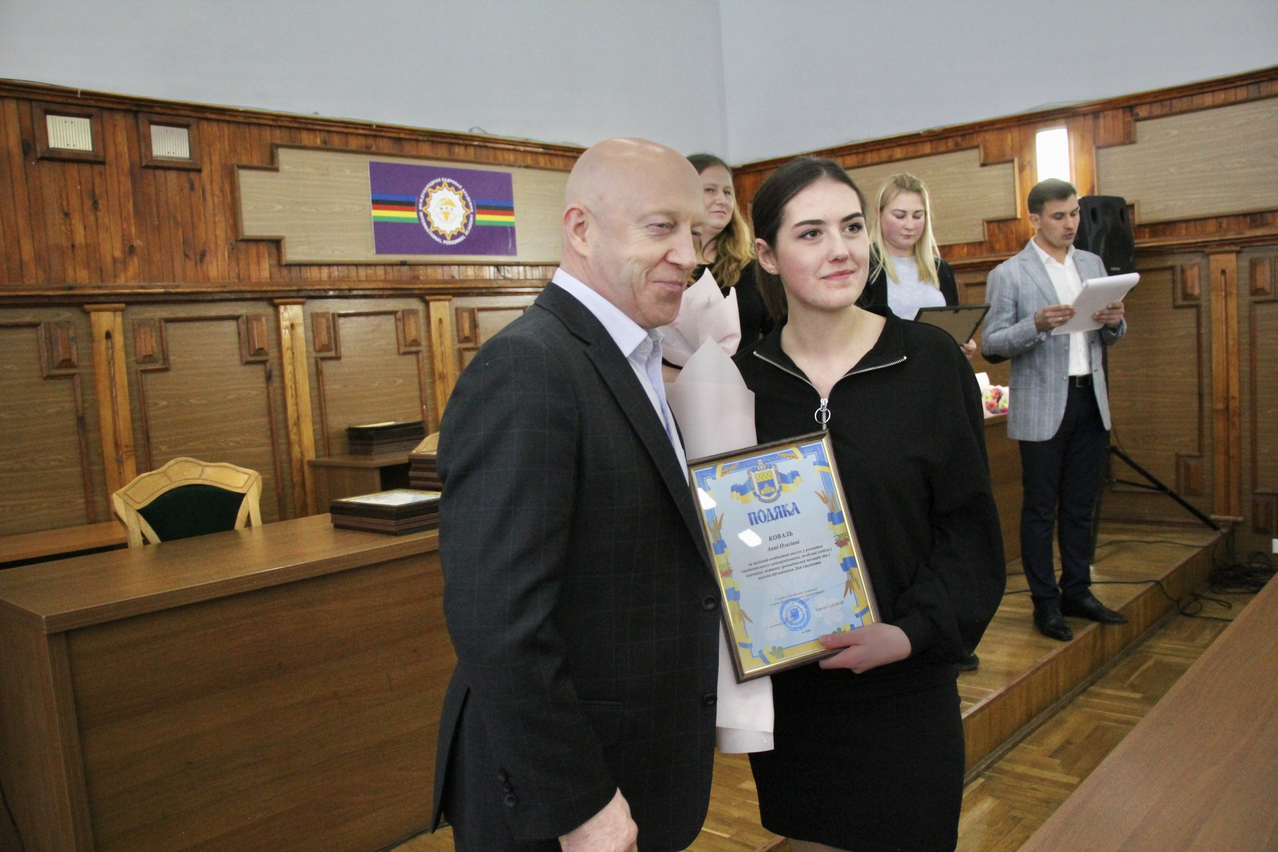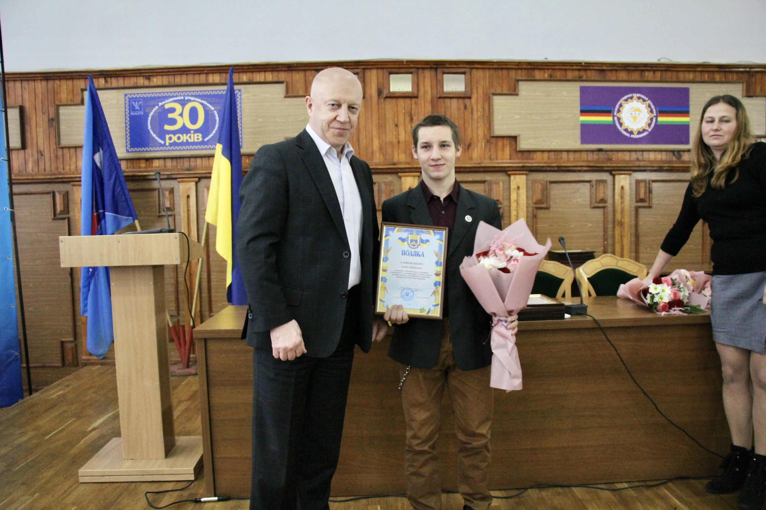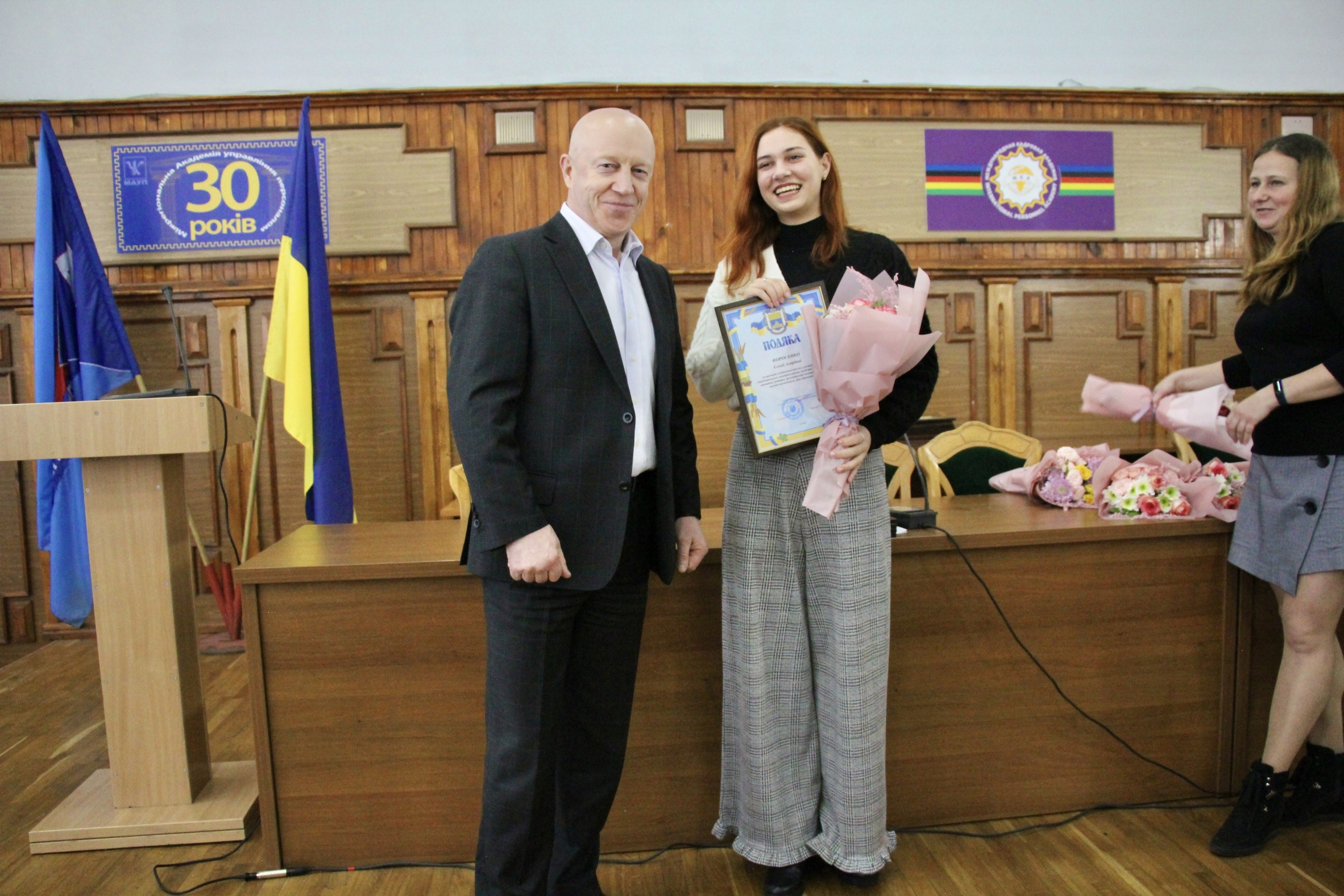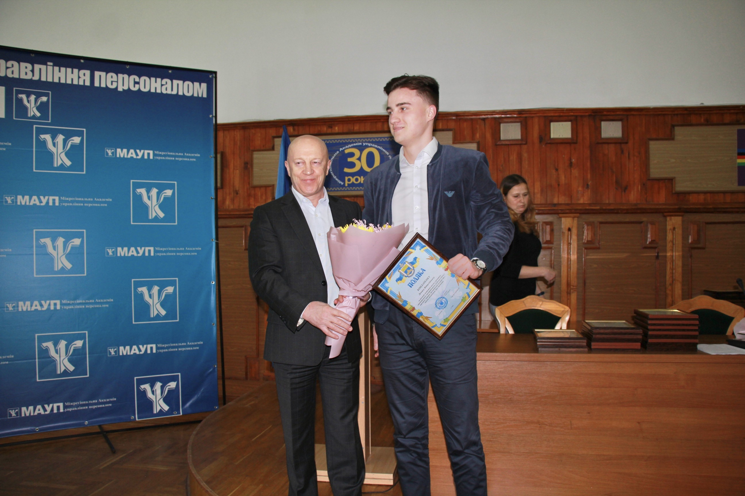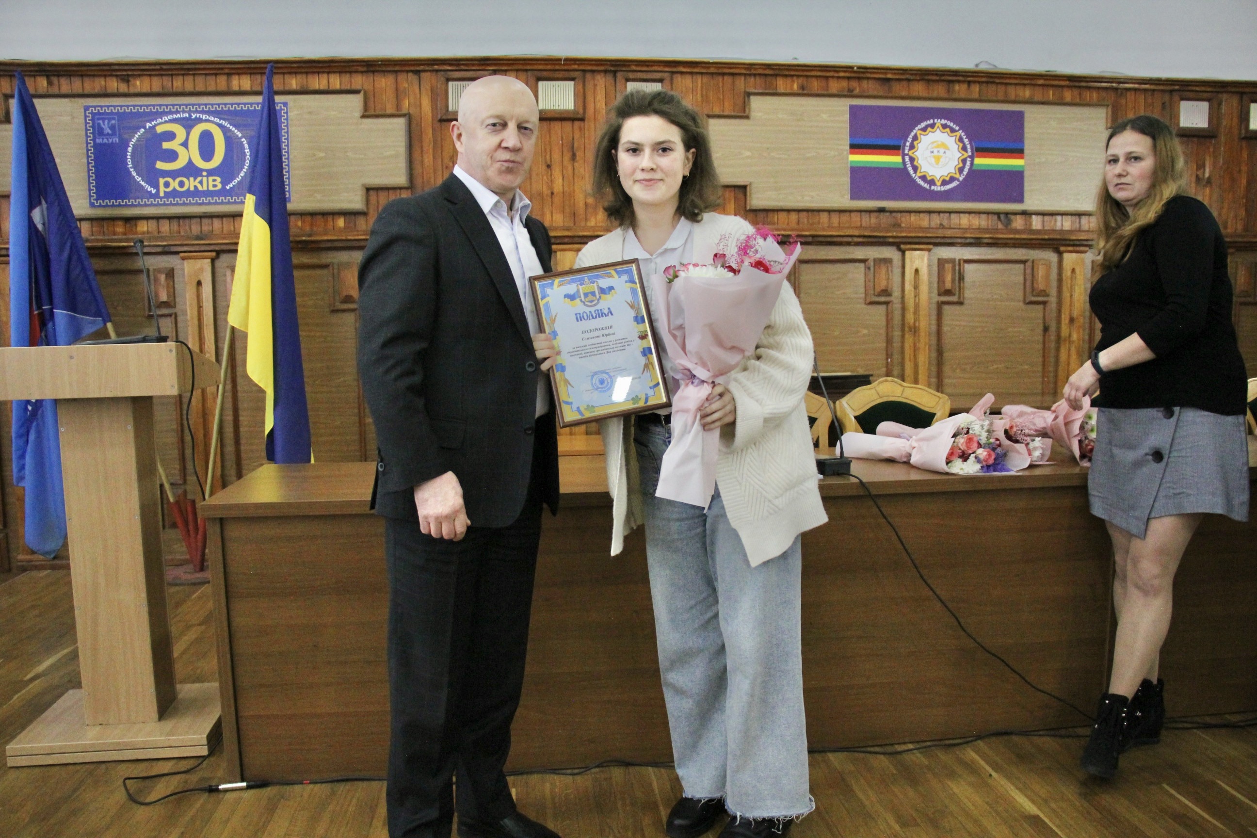 За вагомий особистий внесок у розвиток студентського самоврядування, особливі успіхи у навчанні, активну участь у громадському житті району Подякою голови Голосіївської РДА були відзначені студенти Міжрегіональної Академії управління персоналом, серед них, Хоменко Іван, Литвиненко Валентина, Хізяк Анастасія та Яблонська Іванна.