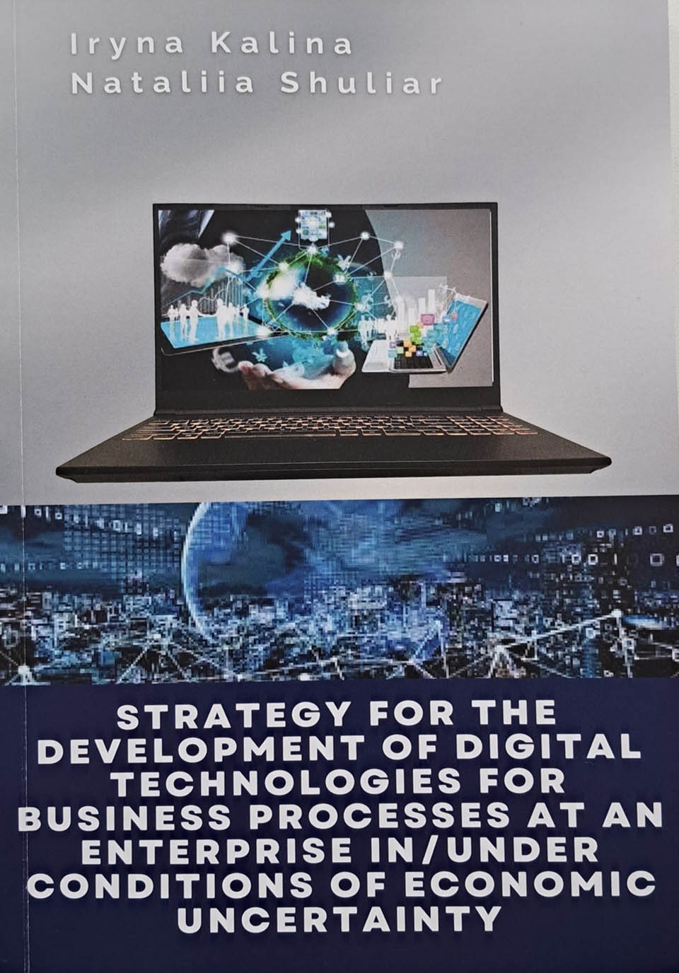 Вийшла друком монографія авторського колективу Ірини Каліної та Наталії Шуляр на актуальну тему "STRATEGY FOR THE DEVELOPMENT OF DIGITAL TECHNOLOGIES FOR BUSINESS PROCESSES AT AN ENTERPRISE IN/UNDER CONDITIONS OF ECONOMIC UNCERTAINTY"