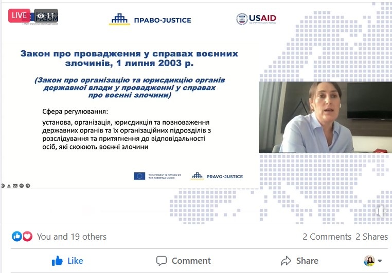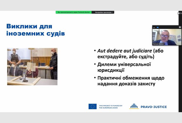 “Україна стала полем битви під час неспровокованої повномасштабної агресії рф. Воєнні злочини та інші порушення міжнародного гуманітарного права, вичинені агресором, мають бути розслідувані належним чином. Тому наша мета - поділитися з українськими колегами міжнародним досвідом щодо моделей судового розгляду таких справ спільнота”, - зазначила Анна Адамська-Галлант, головна міжнародна експертка з питань судової реформи Проєкту ЄС “Pravo-Justice”, колишня міжнародна суддя Верхового суду Косово.