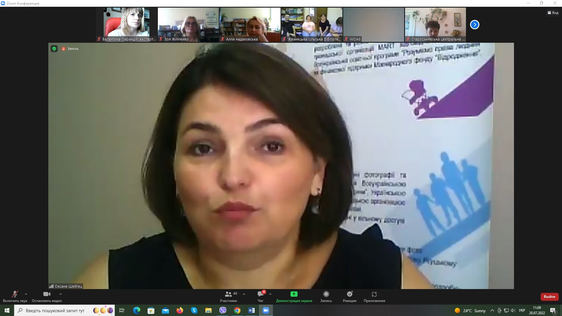 Під час заходу говорили про подання, порядок розгляду електронних петицій та їх особливості в умовах воєнного стану; вебсайти територіальних громад та їх наповнення інформацією. Пані Оксана навела практичні кейси щодо виявлених порушень права на звернення та інформацію; поділилась результатами проведених моніторингів органів місцевого самоврядування, а також проінформувала про контрольні функції Уповноваженого Верховної Ради України з прав людини за дотриманням законодавства про звернення громадян та доступу до публічної інформації.
